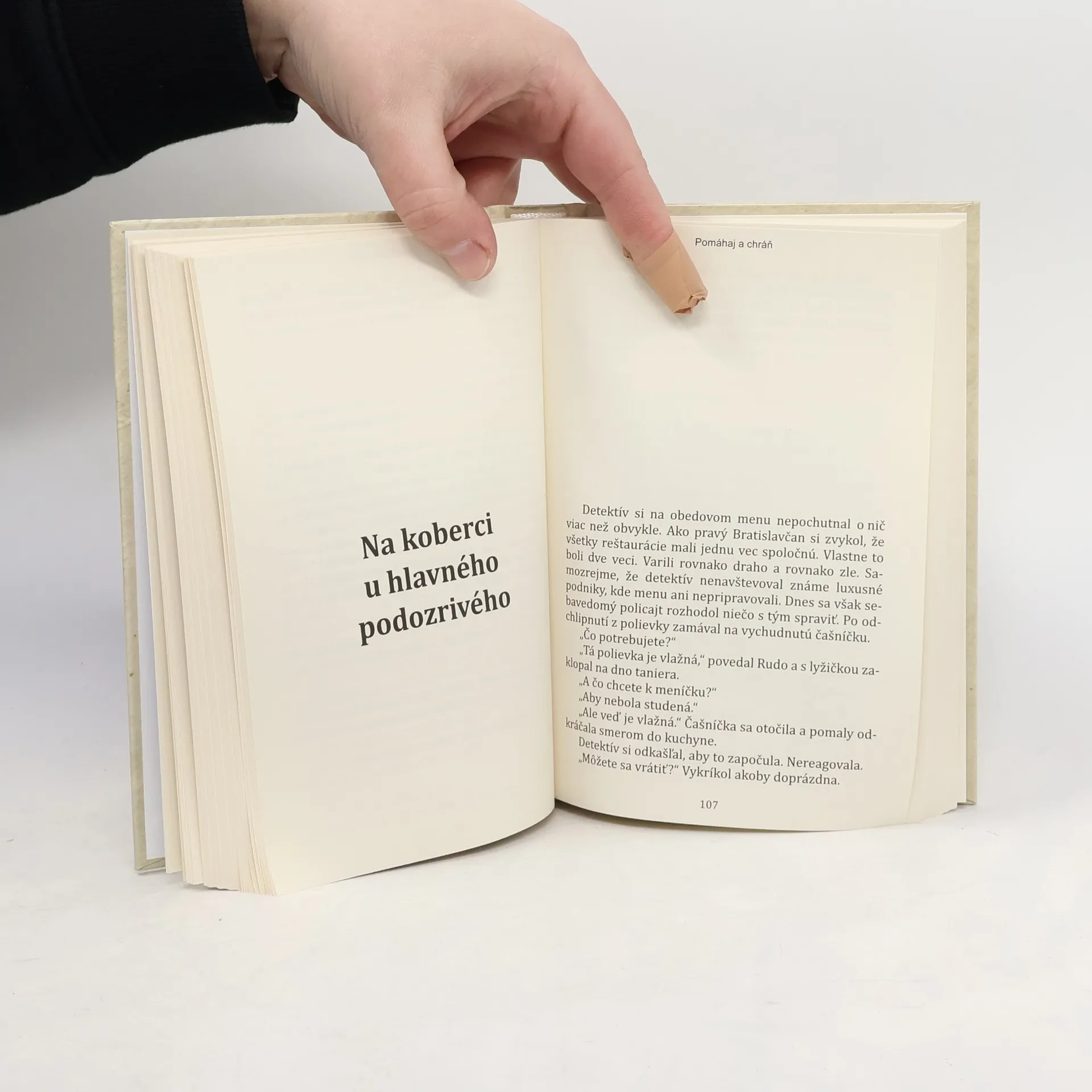 Snáď neexistuje človek, ktorý by nemal vtipnú/milú/úsmevnú/zábavnú/poburujúcu či nepeknú historku s policajtom... Mnohokrát keď ich vidíme odstavených v zašitom úseku vozovky, prevrátime oči a dupneme na brzdu. Zabúdame na to, že sú to ľudia presne takí, ako sme my, obzvlášť ak stretneme dopravákov. A Rudolf Kukla, hlavná postava tejto knihy, ním chce byť. Veľmi. Priam až nadpozemsky si praje stať sa dopravným policajtom, mať rešpekt a rozdávať pokuty. Ale on... skončil na kriminálke. A musí objasniť vraždu prostitútky Karin Novákovej, ku ktorej, ehm... zvykol zbehnúť aj on. Z manžela pod papučou, z človeka so žiadnym sebavedomým, z ľahko podpriemerne inteligentnej bytosti sa tak stáva detektív, ktorý je na celú vraždu sám. Autor si trefne vystrelil z profesie, ktorou sa sám živí. Titul Pomáhaj a chráň tu nie je preto, aby niekoho úmyselne zosmiešnil. Skôr preto, aby pobavil, nielen nás – čitateľov, ale aj ľudí, ktorí denne vidia to, o čom sa my dozvedáme len zo správ. Presne ti, ktorí musia byť ako prví svedkami ohavných trestných činov.