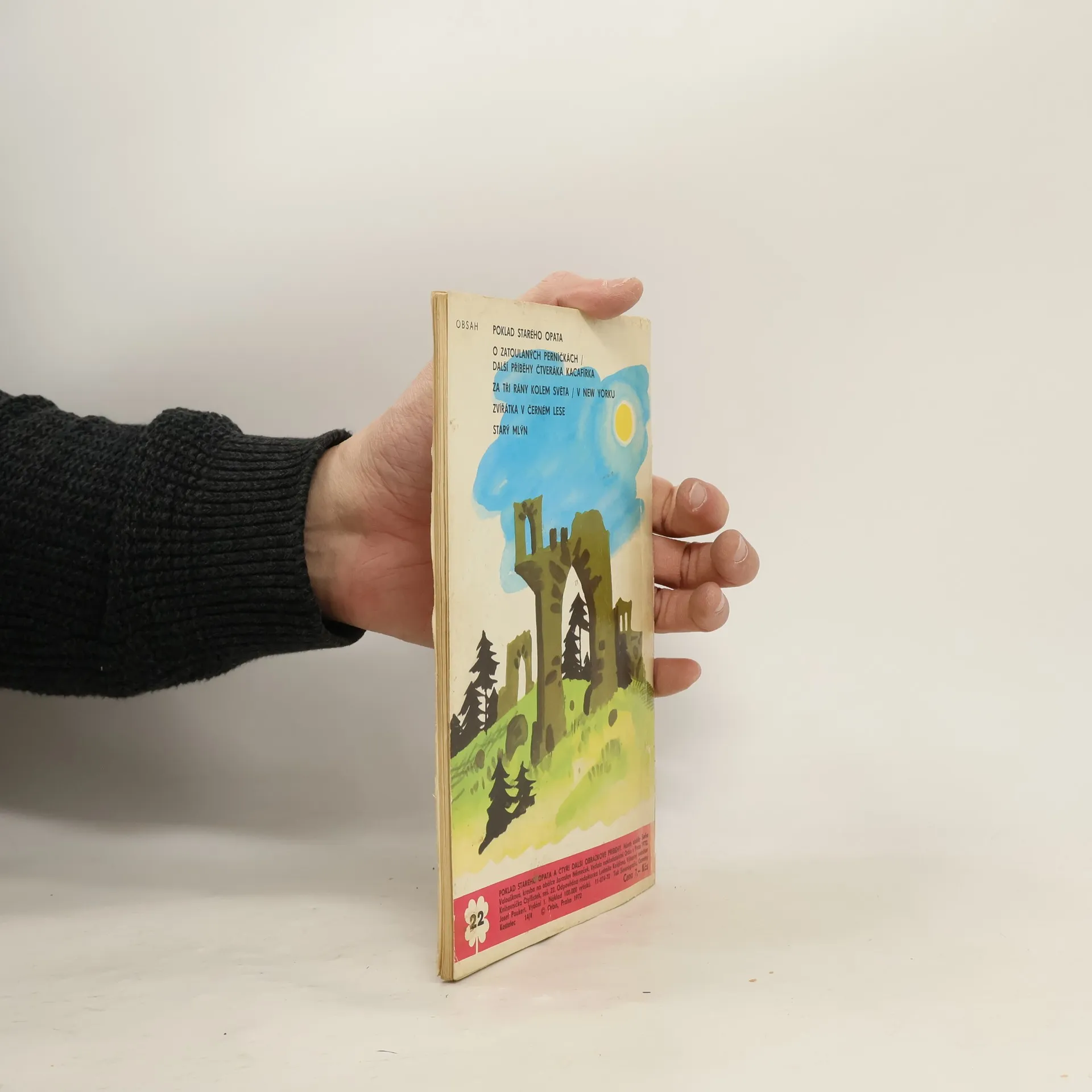 22.díl série Čtyřlístek : Poklad starého opata - Jaroslav Němeček. Další příhody čtveráka Kacifírka - O zatoulaných perníčkách - Helena Sýkorová, Radek Pilař. Za tři rány kolem světa - V New Yorku - Václav Fischer, Karel Franta. Zvířátka v černém lese - Vladislav Křenovský , Zdeněk Kondelík. Starý mlýn - Lenka Konopásková , Edita Plicková.