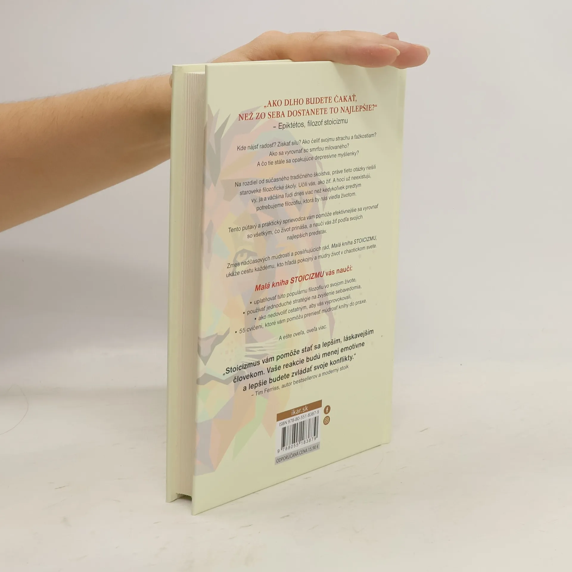 Kde nájsť radosť? Získať silu? Ako čeliť svojmu strachu a ťažkostiam? Ako sa vyrovnať so smrťou milovaného? A čo tie stále sa opakujúce depresívne myšlienky? Nech už prechádzate akoukoľvek namáhavou životnou etapou, stoici vám poradia, ako sa efektívnejšie vyrovnať so všetkým, čo vám život prinesie a ako žiť podľa svojich najlepších predstáv. I napriek starobylosti tejto filozofie pôsobí jej múdrosť prekvapivo moderne a sviežo a jej hodnota pri hľadaní šťastného a zmysluplného života je nepopierateľná. V knihe nájdete osvedčené spôsoby, ako vystúpiť z emocionálnej horskej dráhy, znížiť negatívne emócie a zostať pokojný. Ako žiť podľa súboru overených hodnôt a rozvíjať pozitívne vlastnosti, akými sú odvaha, trpezlivosť, sebadisciplína, vytrvalosť a duševná sila. Ale nájdete v nej aj praktické stratégie, ako zlepšiť svoje momentálne vedomie a lepšie zvládať seba a svoje konanie v tomto chaotickom svete. Pretože jadrom tejto praktickej filozofie je viesť šťastný život aj (a najmä) tvárou v tvár nepriazni osudu.