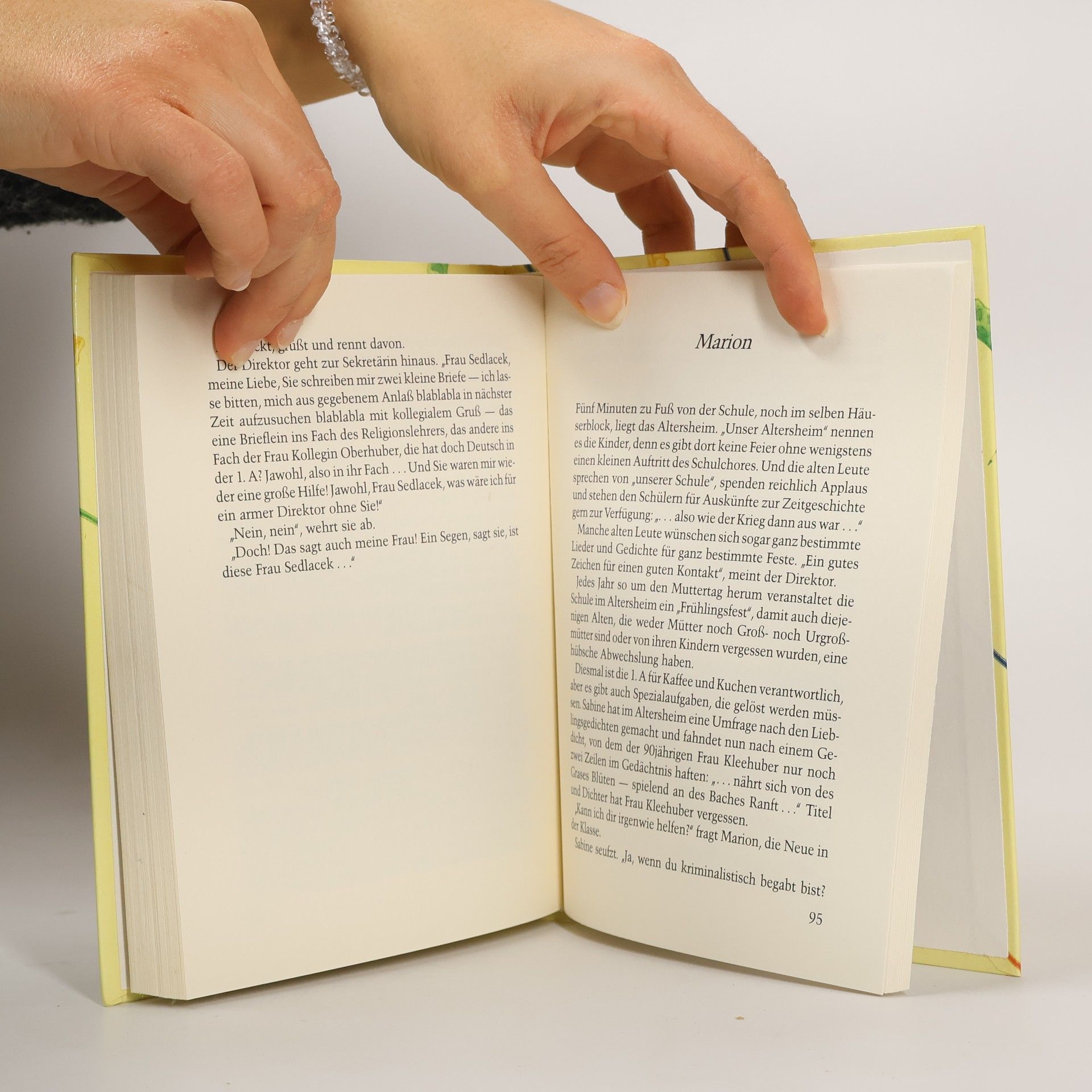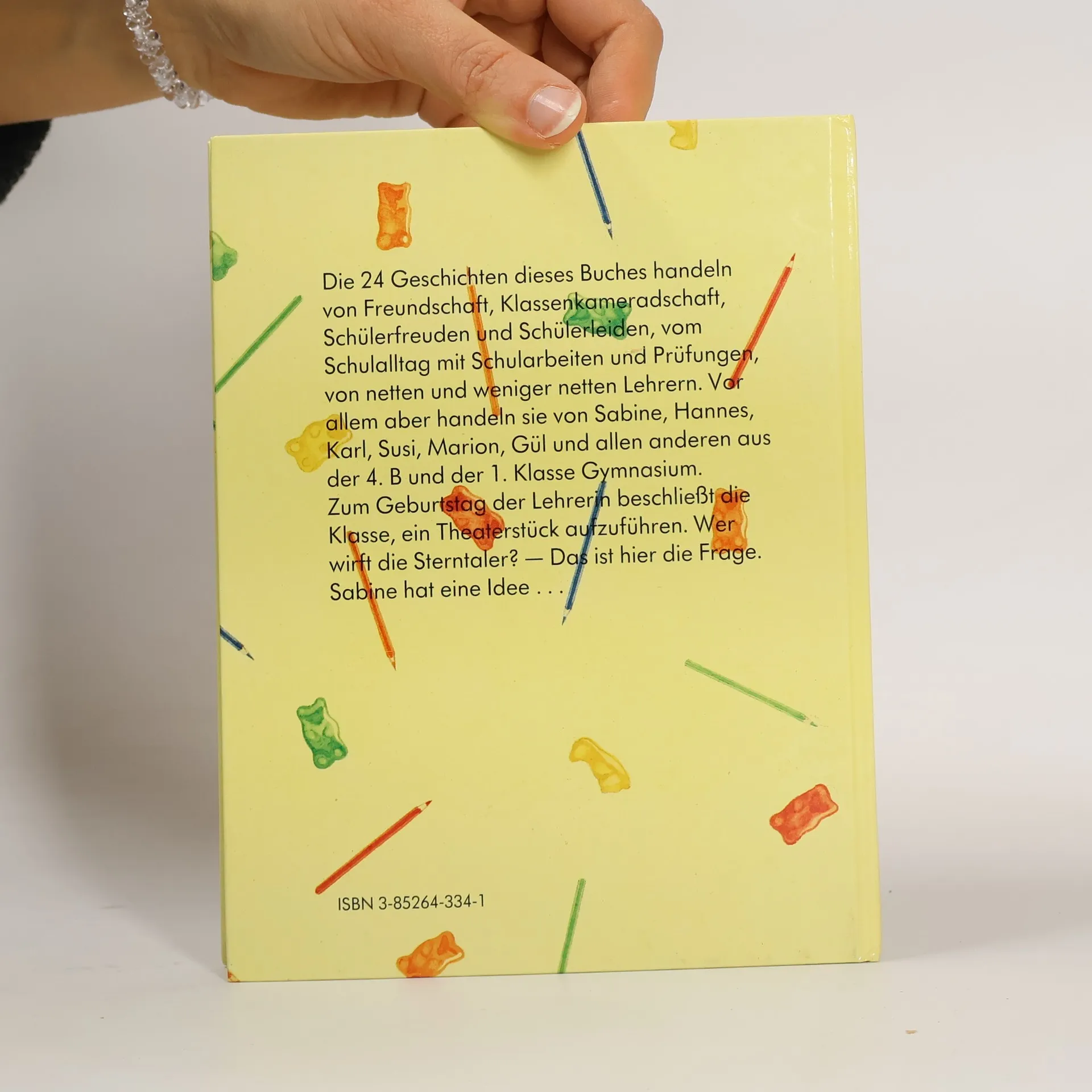 Inhaltsverzeichnis: Radiergummibären. Das Diktat. Grünzeug. Glatteis. Nikolaus. Die Brille. Willi mit der Schiene. Der Ausflug. Wer wirft die Sterntaler? Ein gutes Zeugnis. 1. Klasse Gymnasium: Zwetschgen mit Problem. Eltern. Auf Trab. Nebel. Rollenverteilung. Ein grüblerischer Augenblick. Die Redeübung. Das Fest der Saurier. Spitze-super-grosse Klasse. Schutzengel. Marion. Blickwinkel. Lektion in Liebe. Verbindende Worte.