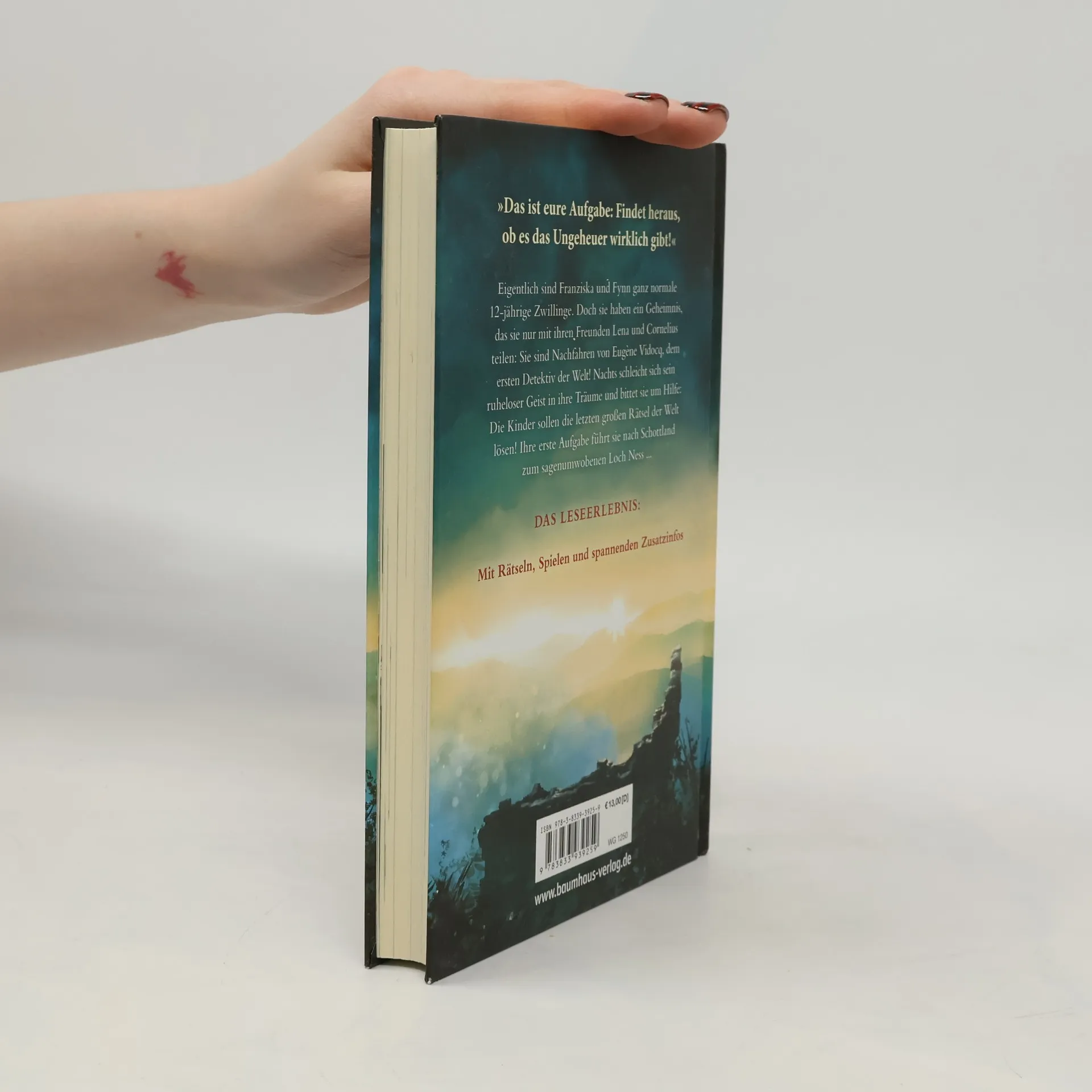 Franziska und Florian, 12-jährige Zwillinge und Nachfahren des ersten Detektivs Eugène Vidocq, haben ein Geheimnis. Nachts erscheint ihnen sein Geist und bittet um Hilfe bei der Lösung großer Rätsel. Mit einer fehlerhaften Zeitmaschine reisen sie nach Schottland zum Loch Ness. Enthält ein Gimmick zum Selbstzüchten eines Urzeitungeheuers!