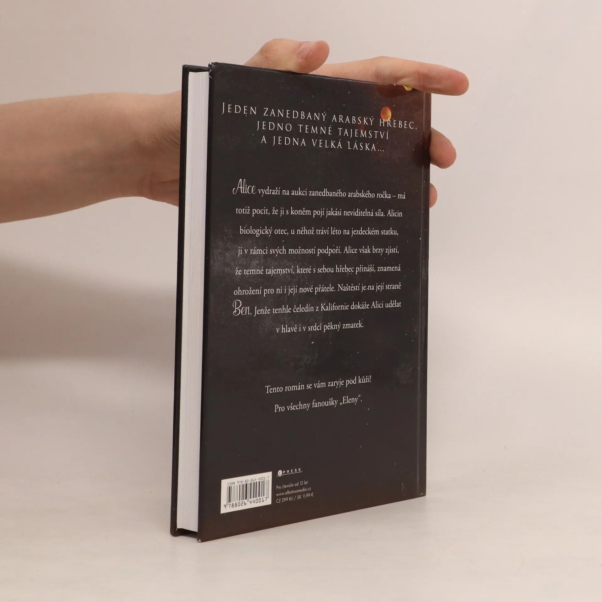 Jeden zanedbaný arabský hřebec, jedno temné tajemství a jedna velká láska… Alice vydraží na aukci zanedbaného arabského ročka – má totiž pocit, že ji s koněm pojí jakási neviditelná síla. Alicin biologický otec, u něhož tráví léto na jezdeckém statku, ji v rámci svých možností podpoří. Alice však brzy zjistí, že temné tajemství, které s sebou hřebec přináší, znamená ohrožení pro ni i její nové přátele. Naštěstí je na její straně Ben. Jenže tenhle čeledín dokáže Alici udělat v hlavě i v srdci pěkný zmatek.