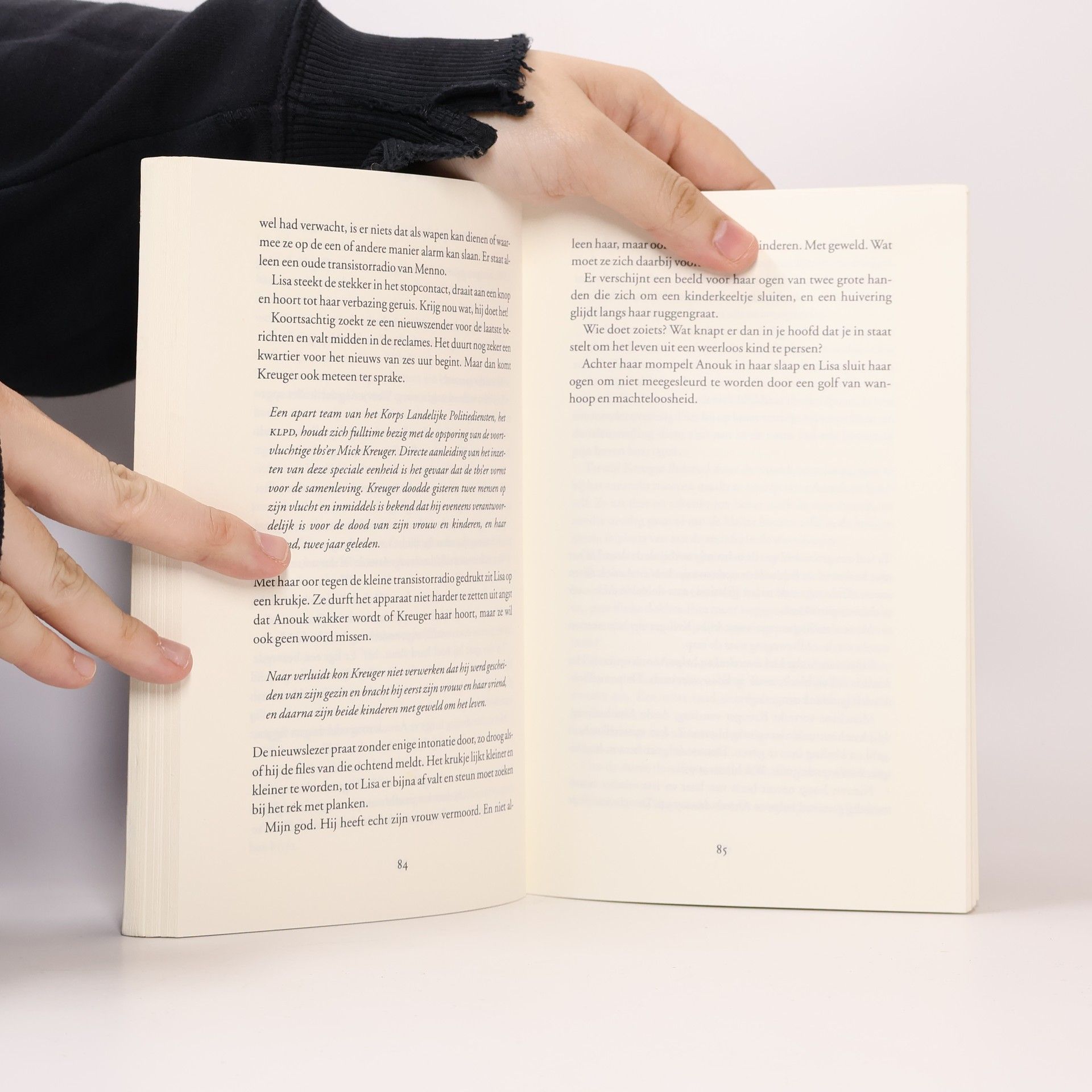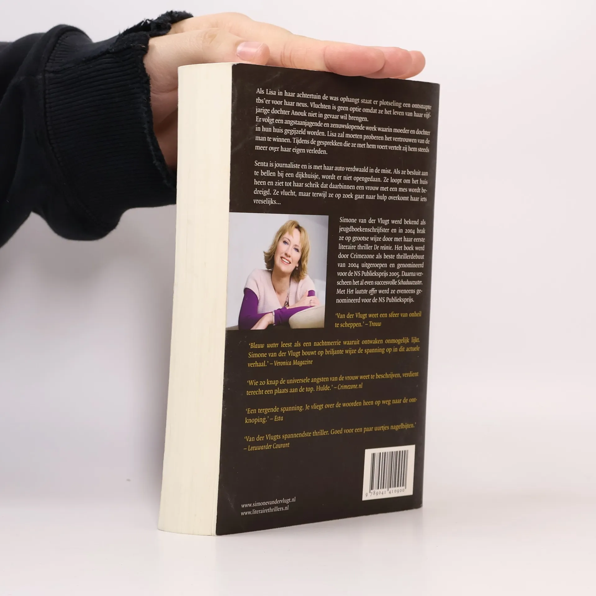 Als Lisa in haar achtertuin de was ophangt staat er ineens een ontsnapte tbs'er voor haar neus. Vluchten is geen optie omdat ze het leven van haar zesjarige dochter Anouk niet in gevaar wil brengen. Er volgt een angstaanjagende en zenuwslopende week waarin moeder en dochter gegijzeld worden in hun eigen huis. Lisa zint op een ontsnappingspoging maar heeft weinig bewegingsvrijheid. Het enige waar ze op kan rekenen is haar inlevingsvermogen, fantasie en mensenkennis. Maar is dat genoeg om het er levend vanaf te brengen? Senta is journalist en is met haar auto verdwaald in de mist. Als ze besluit aan te bellen bij een dijkhuisje, wordt er niet opengedaan. Ze loopt om het huis heen en ziet tot haar schrik dat daarbinnen een vrouw met een mes wordt bedreigd. Ze vlucht, maar terwijl ze op zoek gaat naar hulp overkomt haar iets vreselijks...