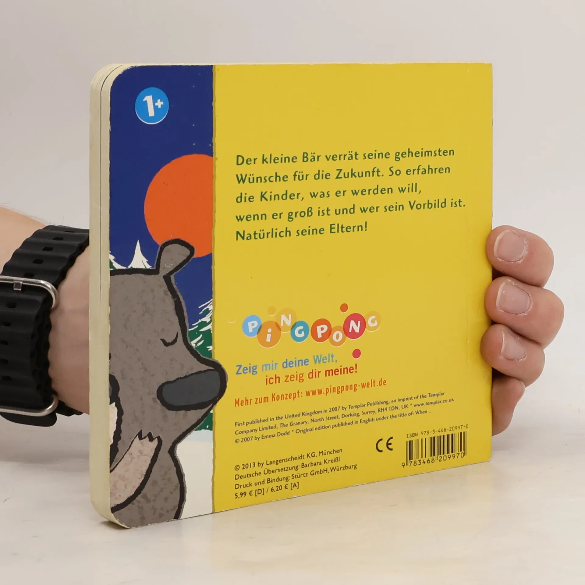 Ein Bilderbuch für Kinder ab einem Jahr aus der Reihe PiNGPONG! mit hochwertigen Illustrationen und eingängigen Reimen. Es fördert das Sprachgefühl, beschreibt Alltagssituationen und stärkt die Wahrnehmung der eigenen Persönlichkeit, während es die Themen Träume und Wünsche für die Zukunft in den Mittelpunkt stellt.