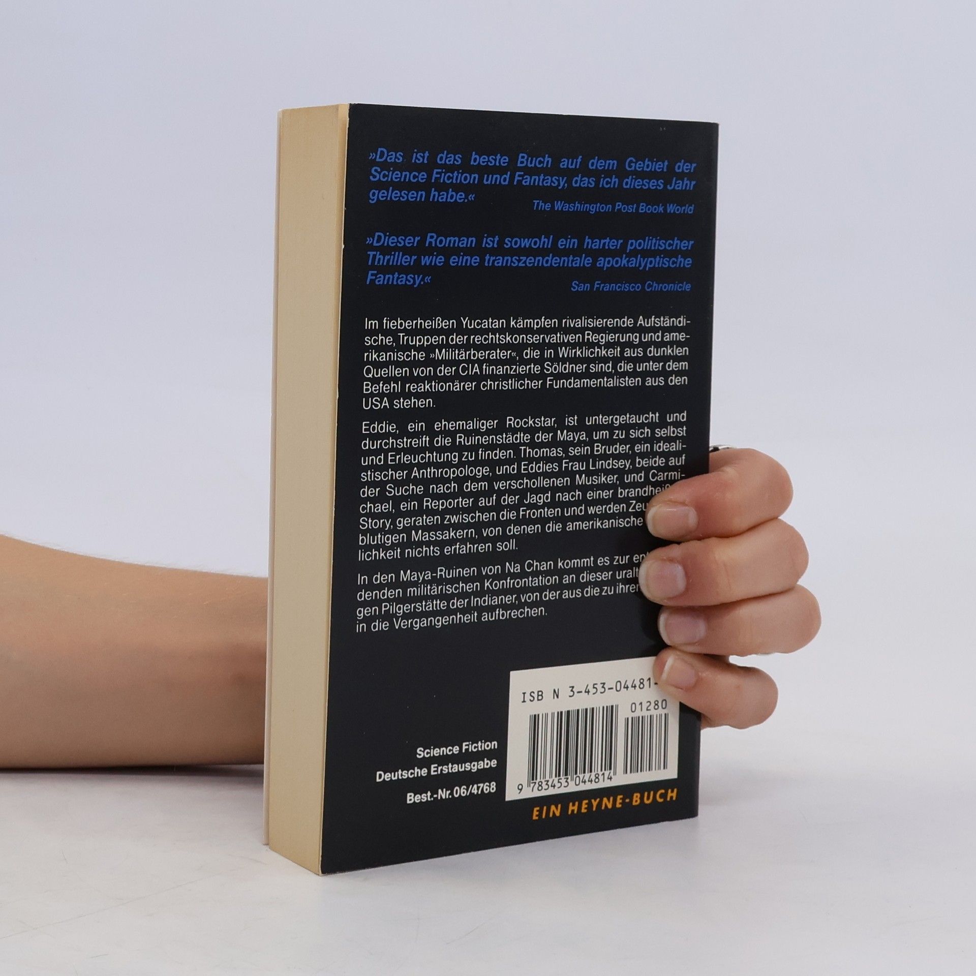 »Das ist das beste Buch auf dem Gebiet der Science Fiction und Fantasy, das ich dieses Jahr gelesen habe.« "The Washington Post Book World" »Dieser Roman ist sowohl ein harter politischer Thriller wie eine transzendentale apokalyptische Fantasy.« Im fieberheißen Yucatan kämpfen rivalisierende Aufständische, Truppen der rechtskonservativen Regierung und amerikanische »Militärberater«, die in Wirklichkeit aus dunklen Quellen von der CIA finanzierte Söldner sind, die unter dem Befehl reaktionärer christlicher Fundamentalisten aus den USA stehen. Eddie, ein ehemaliger Rockstar, ist untergetaucht und durchstreift die Ruinenstädte der Maya, um zu sich selbst und Erleuchtung zu finden. Thomas, sein Bruder, ein idealistischer Anthropologe, und Eddies Frau Lindsey, beide auf der Suche nach dem verschollenen Musiker, und Carmichael, ein Reporter auf der Jagd nach einer brandheißen Story, geraten zwischen die Fronten und werden Zeuge von blutigen Massakern, von denen die amerikanische Offentlichkeit nichts erfahren soll. In den Maya-Ruinen von Na Chan kommt es zur entscheidenden militärischen Konfrontation an dieser uralten heiligen Pilgerstätte der Indianer, von der aus die zu ihren Reisen in die Vergangenheit aufbrechen.