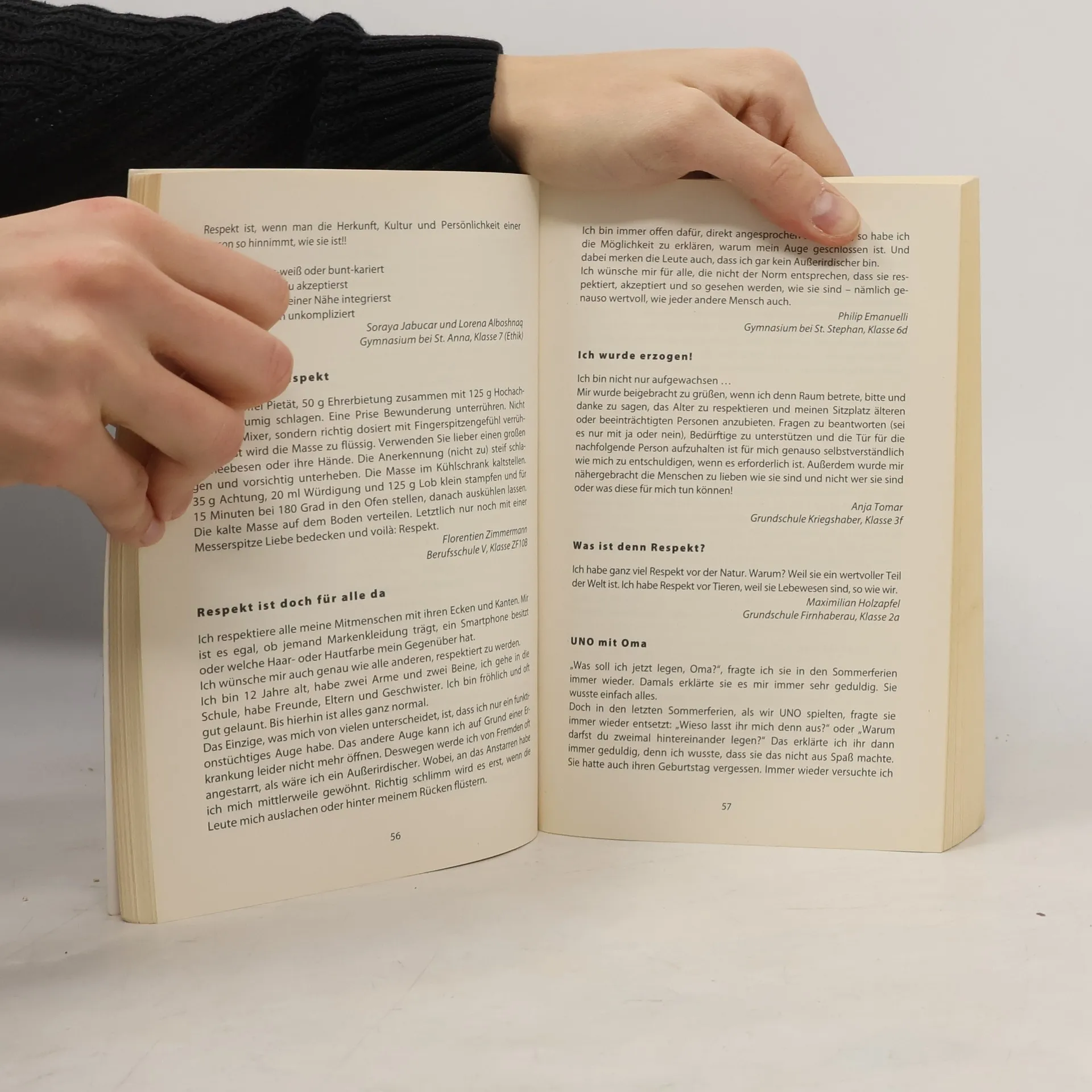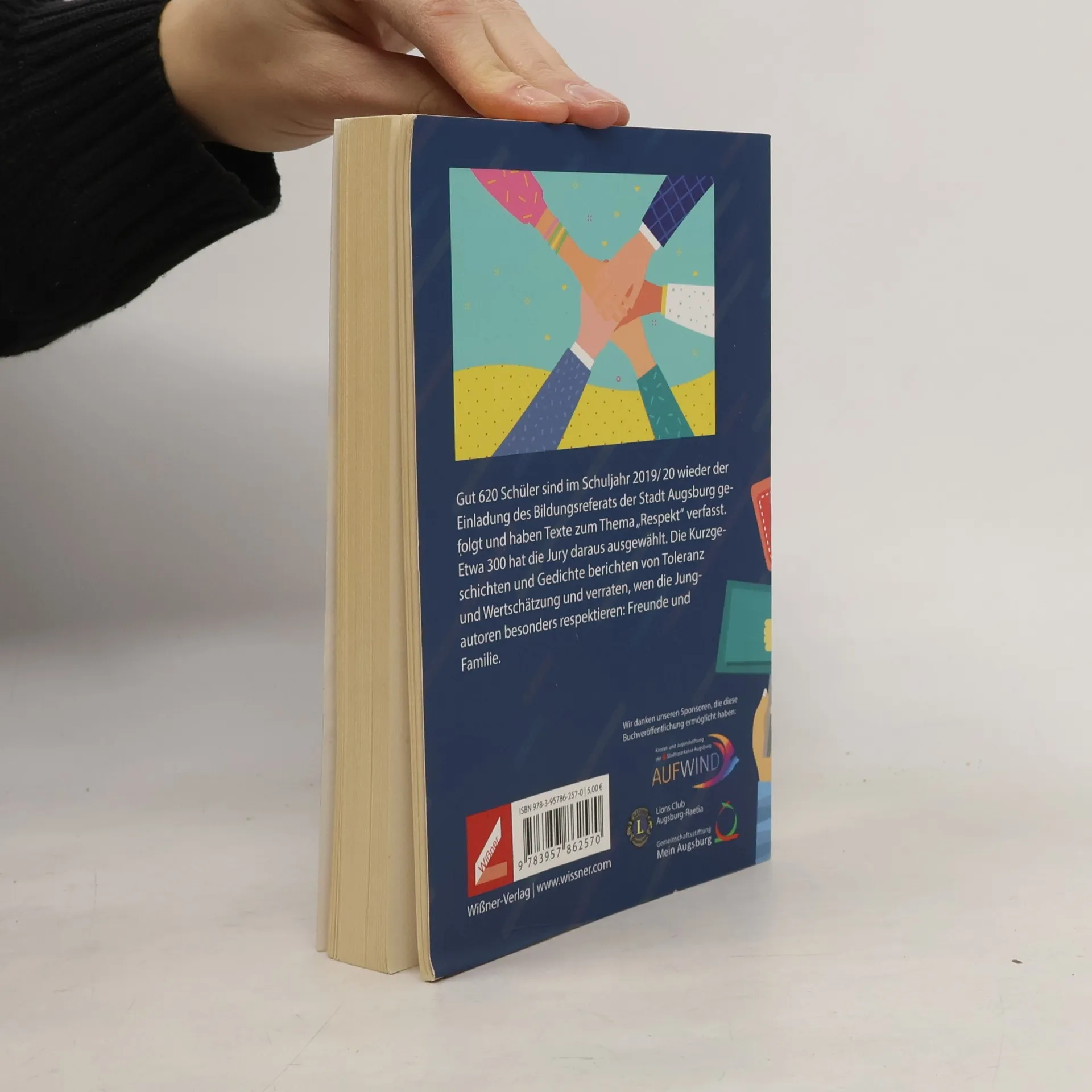 Im Schuljahr 2019/20 haben rund 620 Schüler aus Augsburg Texte zum Thema „Respekt“ verfasst. Die Jury wählte etwa 300 Beiträge aus, die in Kurzgeschichten und Gedichten Toleranz und Wertschätzung thematisieren und die besonderen Respektpersonen der Jungautoren, wie Freunde und Familie, zeigen.