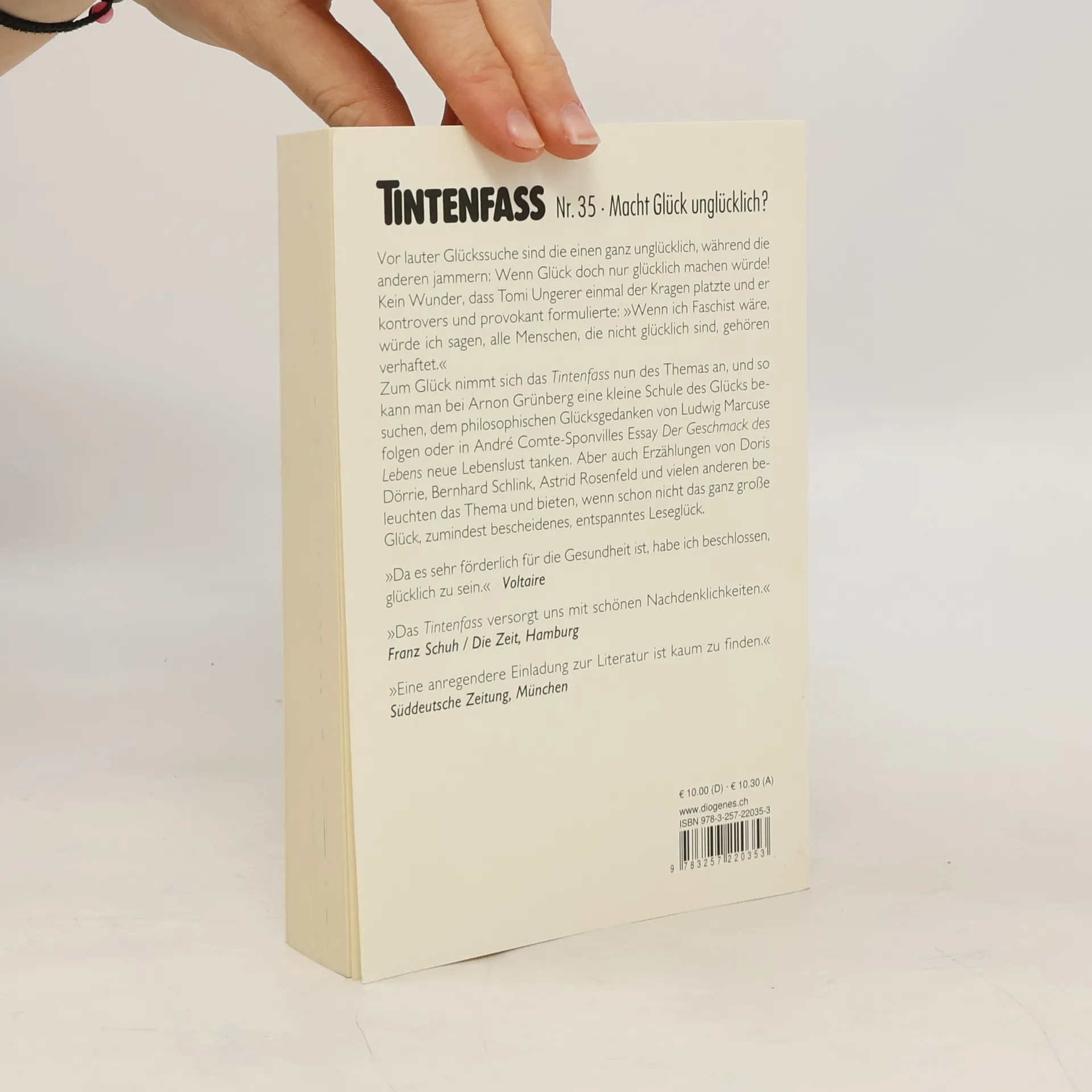Im neuen ›Tintenfass‹ von Arnon Grünberg werden verschiedene Perspektiven auf das Glück präsentiert, darunter philosophische Gedanken und Essays. Erzählungen von Autoren wie Doris Dörrie und Bernhard Schlink bieten entspannte Lesemomente und beleuchten das Thema Glück auf vielfältige Weise.