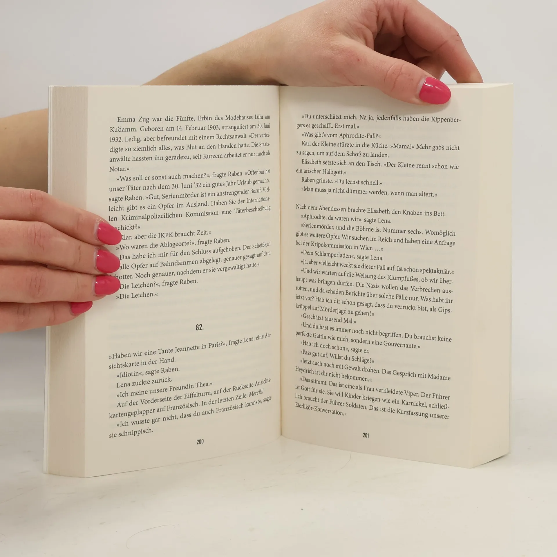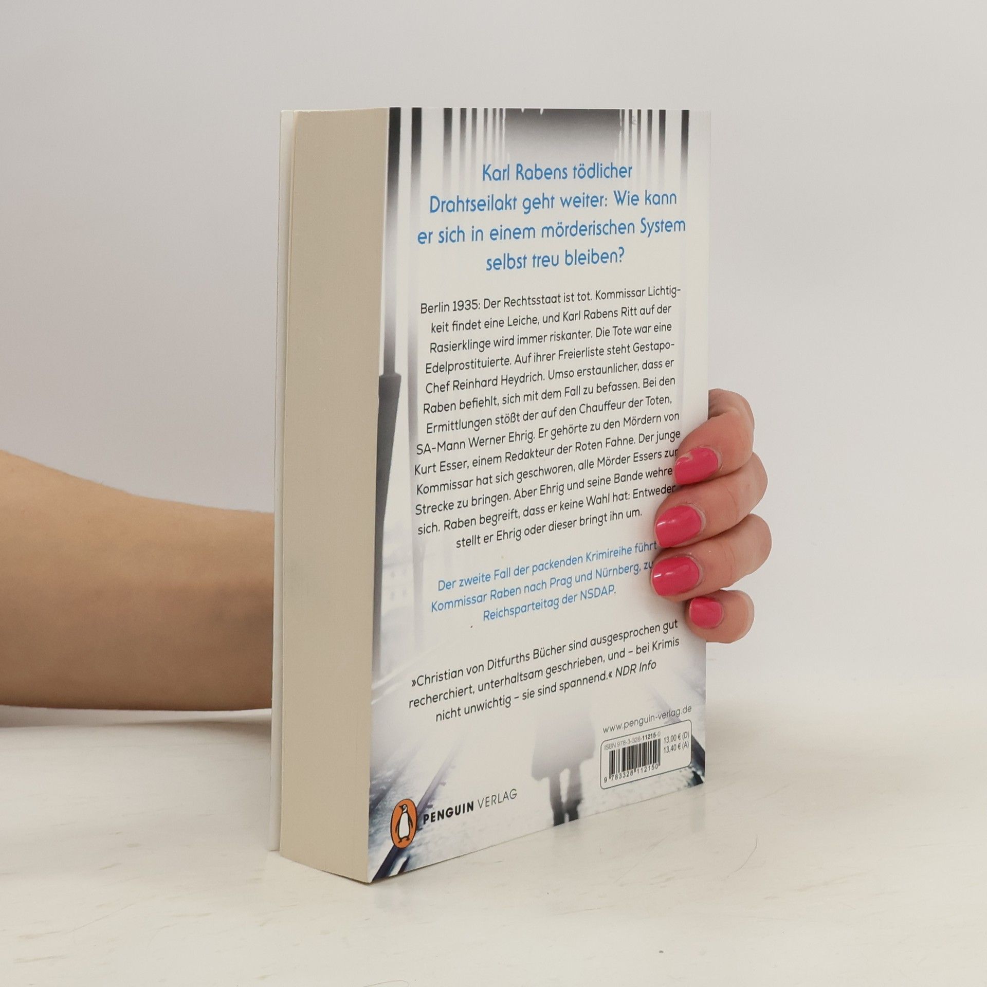 In Berlin 1935 ermittelt Kommissar Raben in einem gefährlichen Fall um eine ermordete Edel-Prostituierte, deren Freier Gestapo-Chef Heydrich ist. Raben muss sich mit dem SA-Mann Ehrig auseinandersetzen, der zu den Mördern eines Redakteurs gehörte. Der Fall führt ihn nach Prag und Nürnberg.