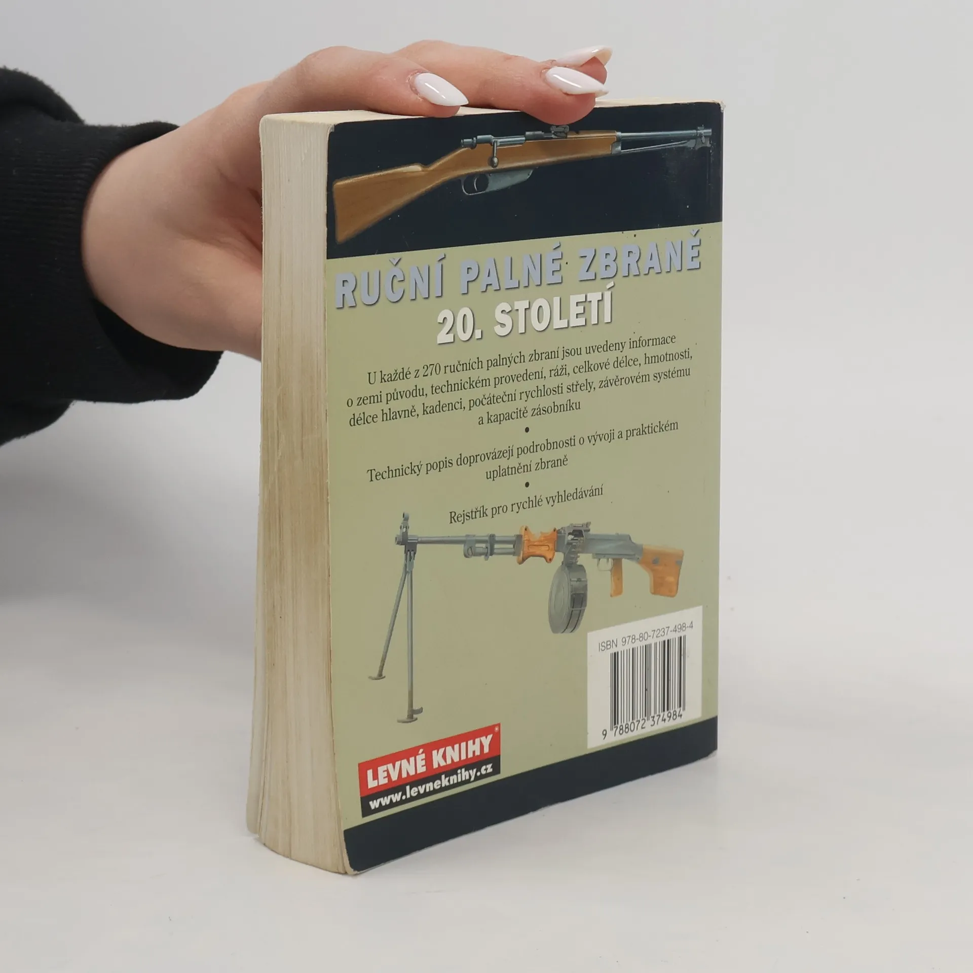 Příručka obsahuje téměř 300 významných typů ručních palných zbraní 20. století. V úvodu autor jen velmi krátce rekapituluje vývoj ručních palných zbraní v 19., ale zejména ve 20. století. V sedmi základních kapitolách ( pistole a revolvery, samopaly, kulomety, opakovací pušky, samočinné pušky, brokovnice a granátomety) jsou jednotlivé typy zbraní řazeny podle zemí původu. Barevné kresby, někdy řezy, jsou doplněny stručným, ale obsažným textem o vývoji, technickém řešení či uplatnění zbraně. Samozřejmostí jsou základní technické údaje: ráže, hmotnost, systém závěru, účinný dostřel a další.