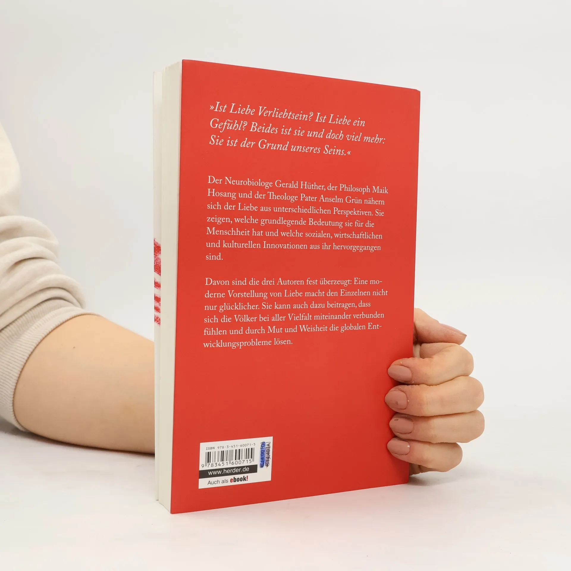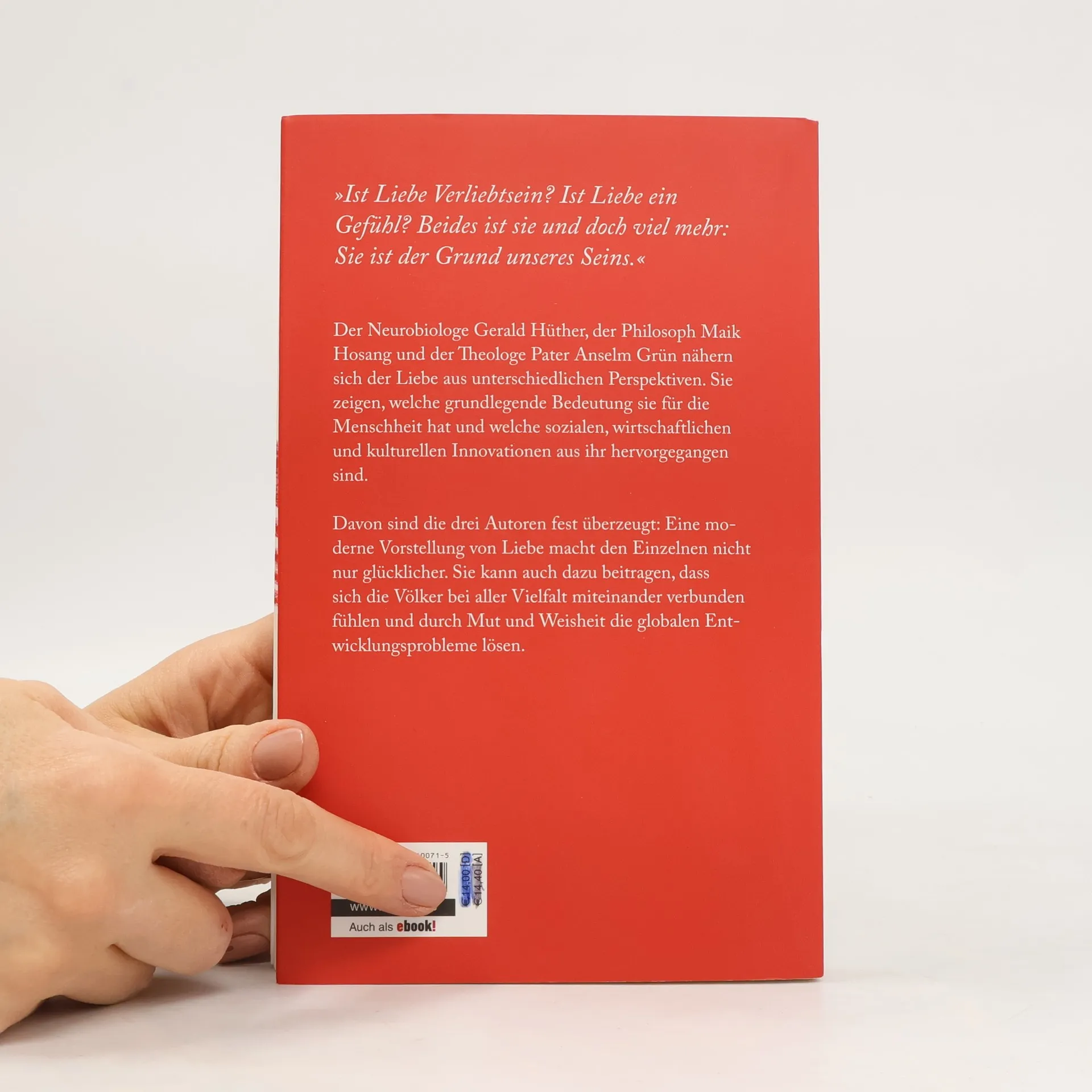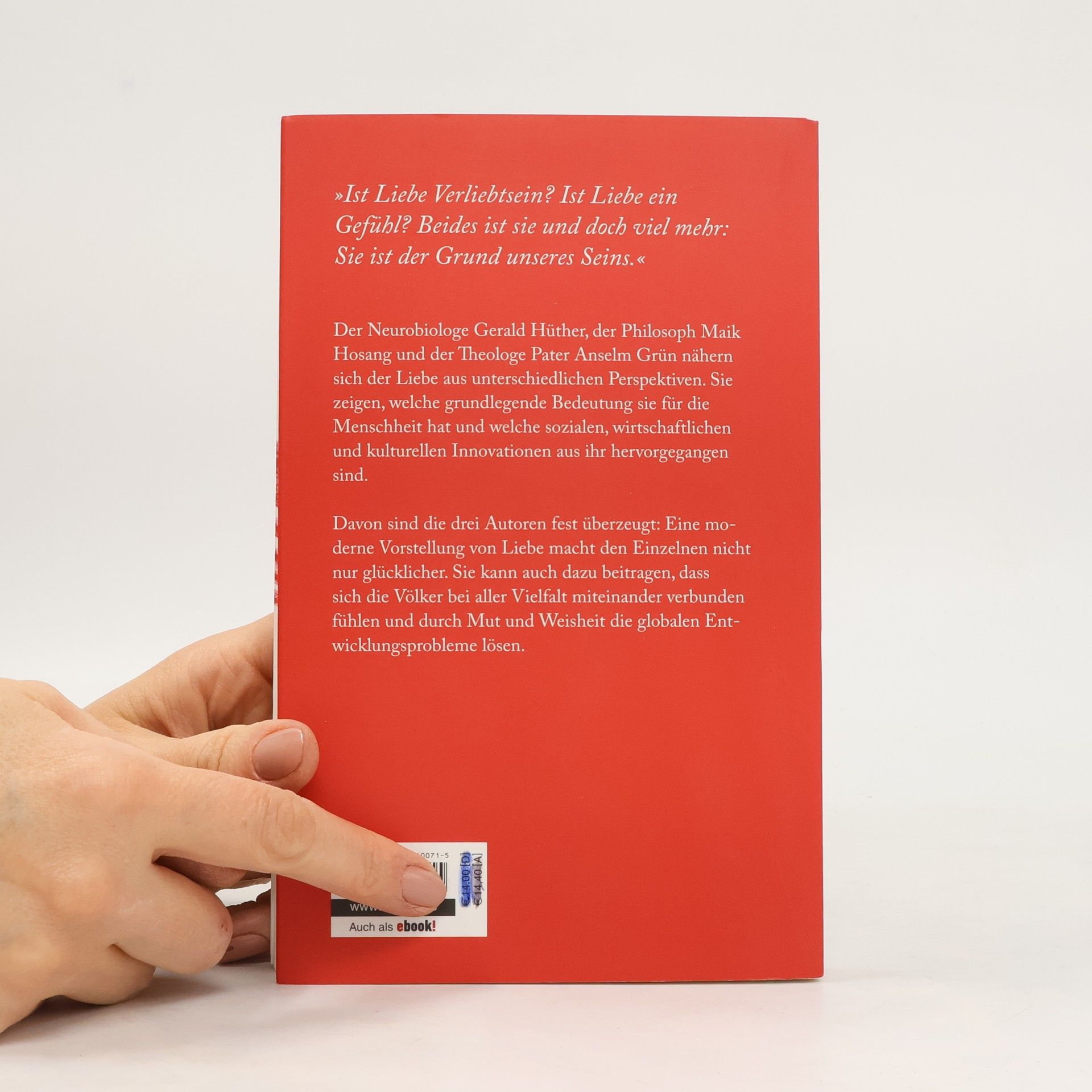 In diesem Buch untersuchen der Neurobiologe Gerald Hüther, der Philosoph Maik Hosang und der Theologe Anselm Grün die Liebe aus verschiedenen Blickwinkeln. Sie beleuchten ihre fundamentale Bedeutung für die Menschheit und die daraus resultierenden sozialen, wirtschaftlichen und kulturellen Innovationen.
