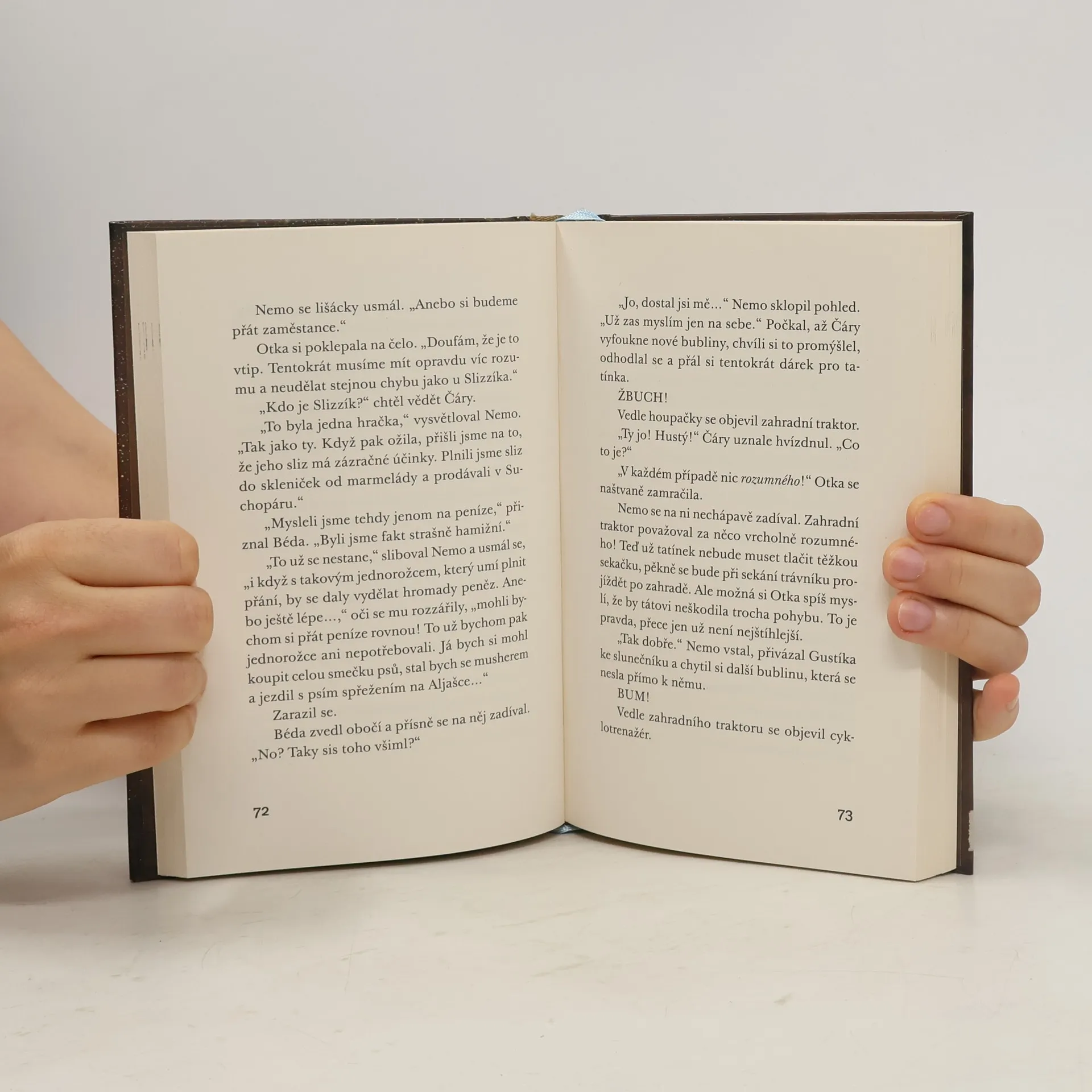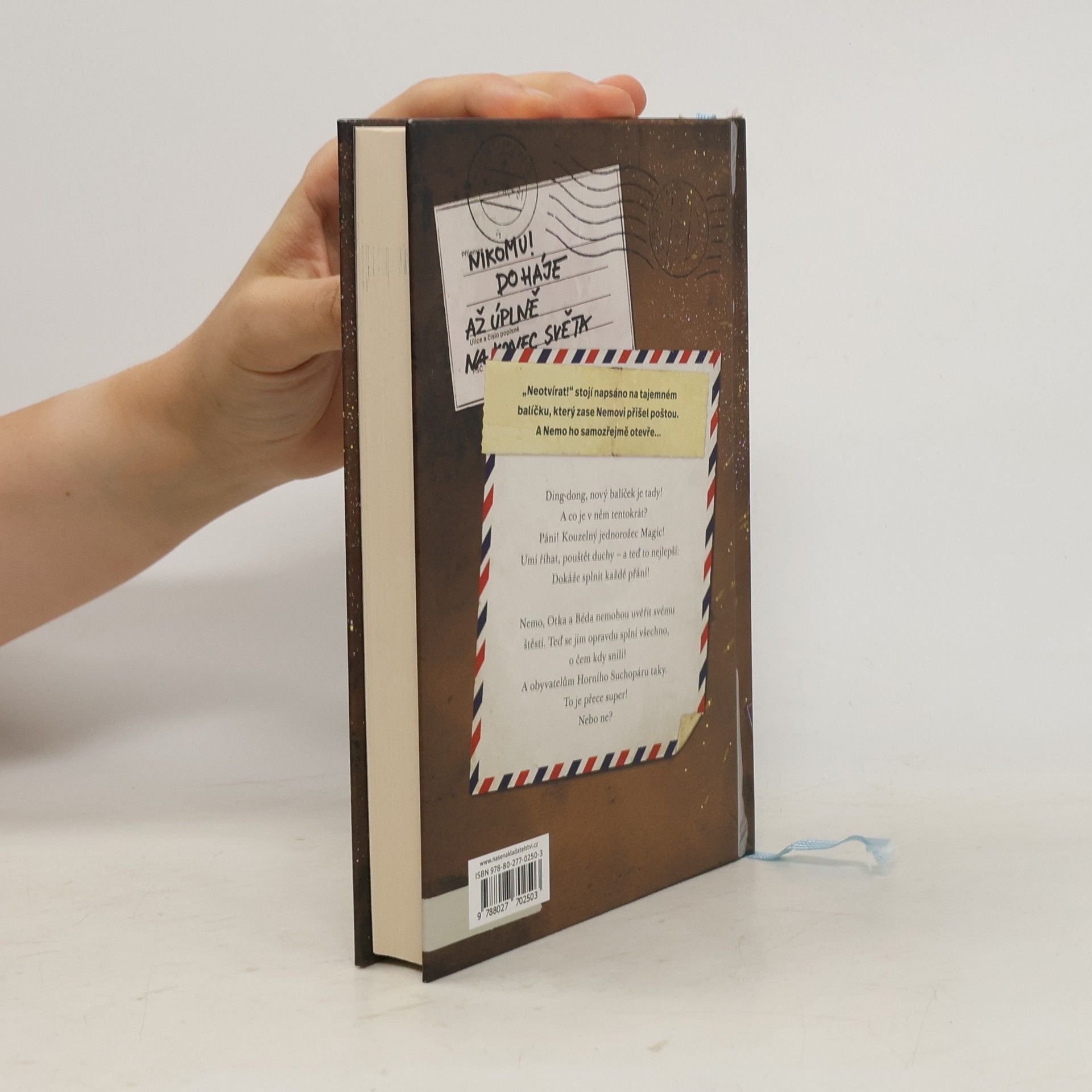 Ding-dong, nový balíček je tady! A co je v něm tentokrát? Páni! Kouzelný jednorožec Magic! Umí říhat, pouštět duchy – a teď to nejlepší: Dokáže splnit každé přání! Nemo, Otka a Béda nemohou uvěřit svému štěstí. Teď se jim opravdu splní všechno, o čem kdy snili! A obyvatelům Horního Suchopáru taky. To je přece super! Nebo ne? Pátý příběh z oblíbené série dobrodružství pro děti přináší spoustu překvapení i spoustu otázek: Jak si naši tři hrdinové Nemo, Otka a Béda poradí s tvrdohlavým jednorožcem? Podaří se jim ho přivést tam, kam patří, a Hornímu Suchopáru vrátit klid? Kdo bude nový starosta? A co všechna splněná přání? Poutavé vyprávění o dětském přátelství ve světě dospělých by nebylo úplné bez kouzelných obrázků Fréderica Betranda. I rodiče se při čtení na dobrou noc možná trochu zasní...