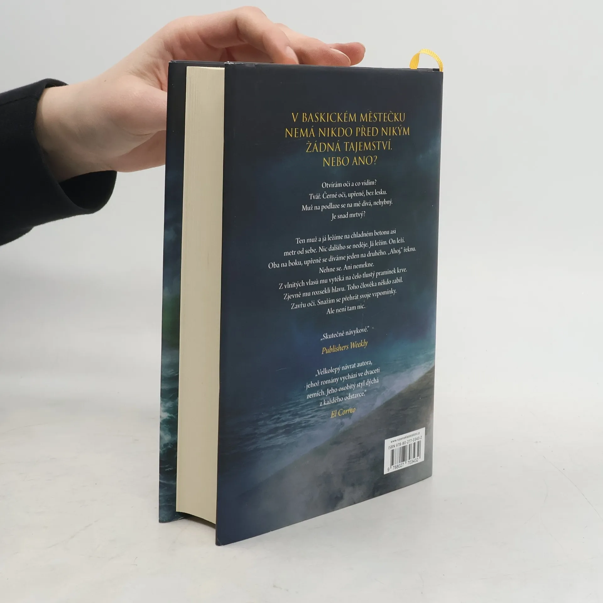 Některé romány už po prvních stránkách jednoduše není možné pustit z hlavy. Jsou příběhy, které udržují čtenáře v neustálém napětí a konec každé kapitoly znamená další nevyřešenou otázku. Mikel Santiago v tomto neuvěřitelně originálním thrilleru boří limity psychologické zápletky a zkoumá křehké hranice mezi vzpomínkou a amnézií, mezi pravdou a lží. V první scéně se hlavní hrdina probouzí v opuštěné továrně vedle mrtvoly neznámého muže a kamene potřísněného krví. Poté, co odtamtud uteče, se rozhodne sám rozluštit, k čemu tam došlo. Má ovšem problém: pamatuje si jen velmi matně, co se v uplynulých osmačtyřiceti hodinách stalo. A to málo, co ví, je lepší si nechat pro sebe. Tak začíná thriller, který nás přenese do pobřežního baskického městečka, mezi klikaté cesty na krajích útesů, do domů se stěnami popraskanými od nočních bouří: do malého města, kde na první pohled nemá nikdo před nikým žádné tajemství.