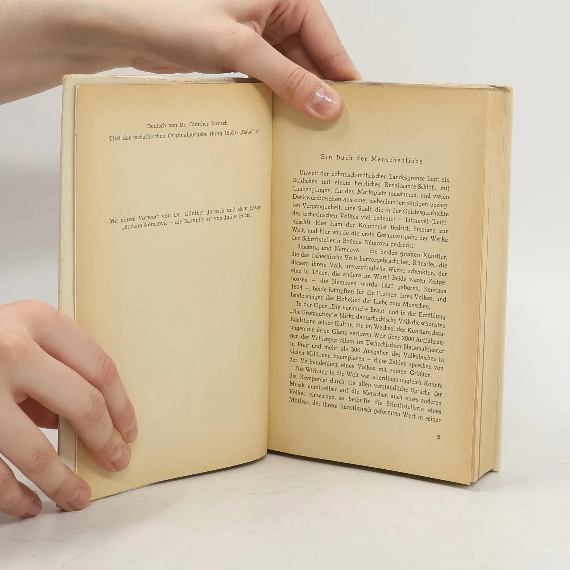 Der Roman trägt starke autobiographische Züge. Im Mittelpunkt steht die gütige Babička, die zu einer national-romantischen Identifikationsfigur wurde. Erzählt wird das idyllische Landleben im Aupatal, im Babiččino údolí (Großmuttertal), mit dem Dorf und Schloss Ratibořice. Auch die Schlossherrin Wilhelmine von Sagan wird idealisierend als verständnisvolle Fürstin (paní kněžna) charakterisiert.