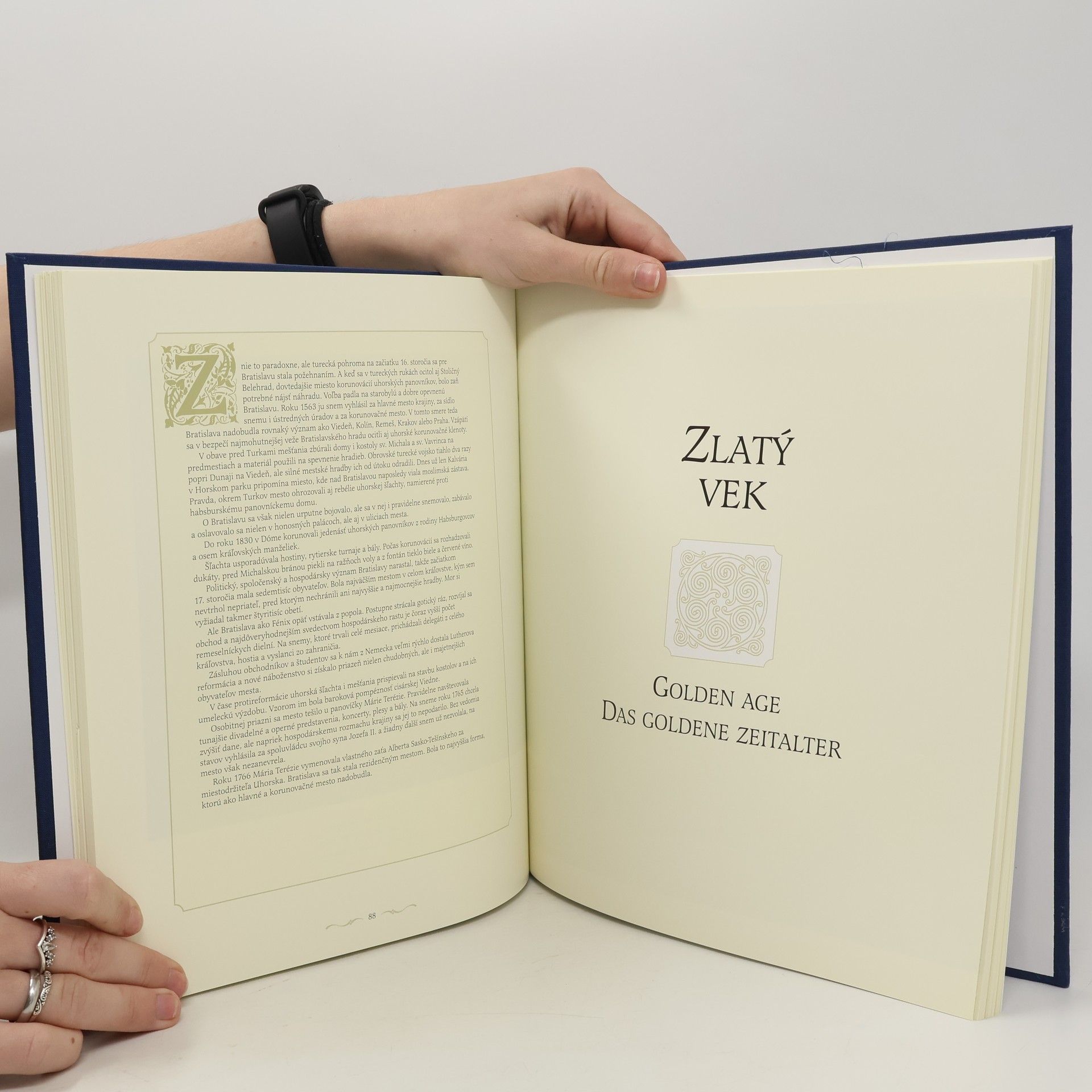 Europe, Travel, German, 2009 Media Svatava. Text in Slovak, English, and German. NOT ex-library. Oversize hardcover, 9.75 x 11.25 inches, has navy cloth-covered boards with gold spine lettering and a color paper pasted-on illustration the front cover; illustration has blind-stamped border. Color photographs and illustrations throughout, many comparing early views of the city to modern ones. Four double-page fold-outs. High-quality glossy paper. Binding tight. Hinges NOT cracked. Book is in excellent condition with only a hint of shelf wear. Pages clean and unmarked. 158 pages. No dust jacket. Carefully packed.