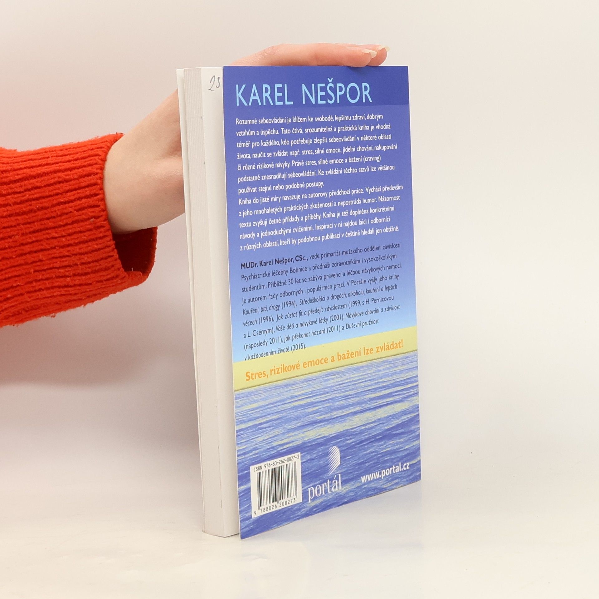 Rozumné sebeovládání je klíčem ke svobodě, zdraví, vztahům a úspěchu. Tato kniha je čtivá, srozumitelná a praktická, ideální pro každého, kdo chce zlepšit sebeovládání v různých oblastech života, jako je zvládání stresu, silných emocí, jídelního chování či rizikových návyků. Stres a silné emoce podstatně ztěžují sebeovládání, avšak lze na ně aplikovat podobné postupy. Kniha navazuje na autorovy předchozí práce zaměřené na léčbu návykových nemocí a zvládání stresu. Vychází z jeho dlouholetých praktických zkušeností a obsahuje humor. Zajímavost textu zvyšují příklady a příběhy z každodenního života. Kniha nabízí konkrétní návody a jednoduchá cvičení. Inspiraci zde najdou nejen laici, ale i odborníci z různých oborů, přičemž podobnou publikaci v češtině je obtížné nalézt. Autor, MUDr. Karel Nešpor, CSc., vede primariát mužského oddělení závislostí v Psychiatrické léčebně Bohnice a přednáší zdravotníkům a studentům. Již 30 let se věnuje prevenci a léčbě návykových nemocí a je autorem řady odborných i populárních prací.