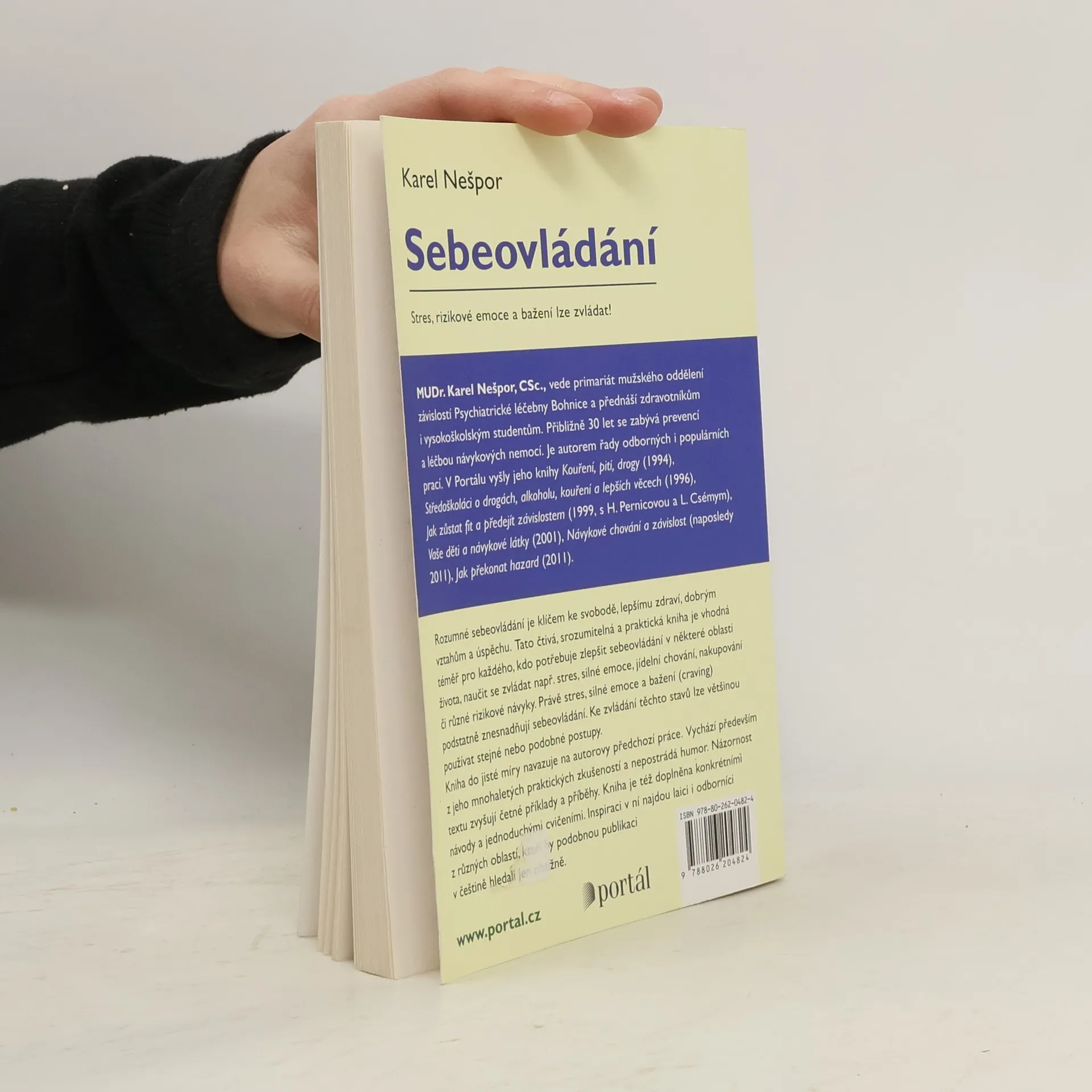 Rozumné sebeovládání je klíčem ke svobodě, zdraví, dobrým vztahům a úspěchu. Tato kniha je čtivá, srozumitelná a praktická, ideální pro každého, kdo chce zlepšit své sebeovládání v různých oblastech, jako jsou stres, silné emoce, jídelní chování či rizikové návyky. Stres a bažení podstatně ztěžují sebeovládání, ale lze je zvládat podobnými metodami. Kniha navazuje na autorovy předchozí práce o léčbě návykových nemocí a zvládání stresu a je založena na jeho dlouholetých zkušenostech, které jsou podány s humorem. Text je obohacen o příklady a příběhy z každodenního života, což zvyšuje jeho atraktivitu a názornost. Obsahuje konkrétní návody a jednoduchá cvičení, která mohou inspirovat jak laiky, tak odborníky. MUDr. Karel Nešpor, CSc., vede primariát mužského oddělení závislostí a přednáší zdravotníkům a studentům. Po třiceti letech v oblasti prevence a léčby návykových nemocí je autorem řady odborných i populárních publikací. Jeho knihy, vydané v Portálu, se zaměřují na témata jako kouření, alkohol, drogy a prevenci závislostí.