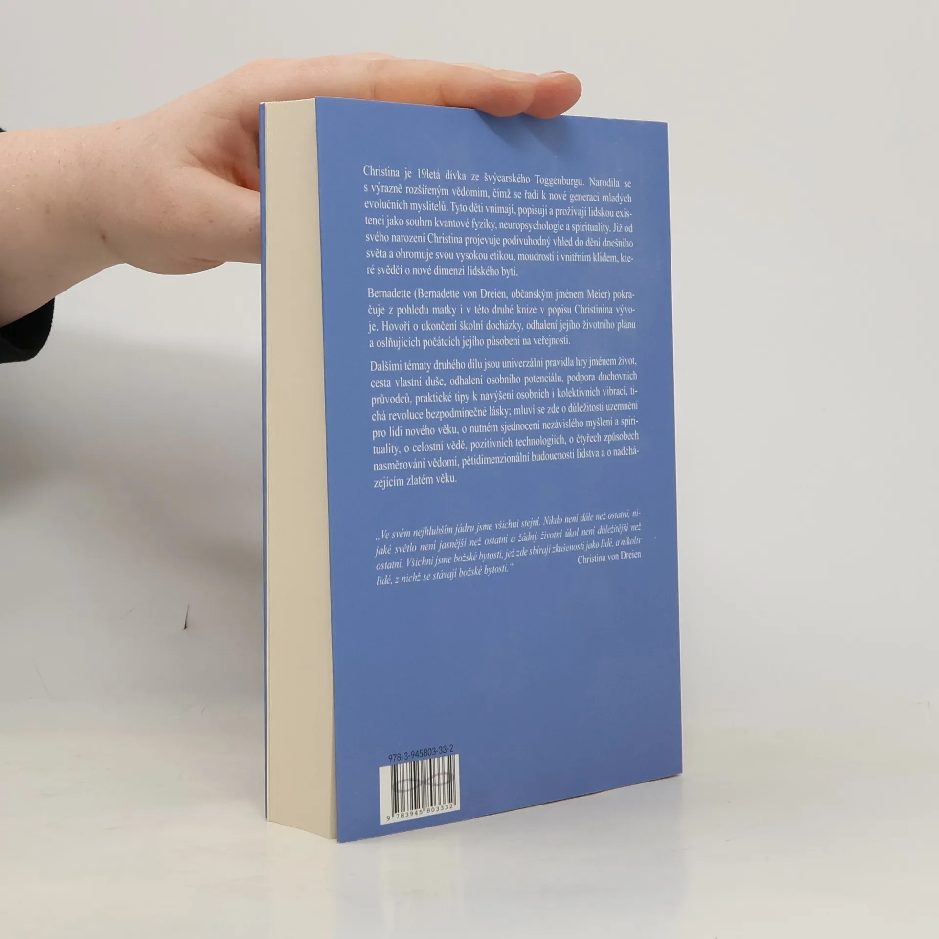 Christina je 19letá dívka ze švýcarského Toggenburgu.Narodila se s výrazně rozšířeným vědomím,čímž se řadí k nové generaci evolučních myslitelů.Již od narození Christina projevuje podivuhodný vhled do dění dnešního světa a ohromuje svou etikou,moudrostí i vnitřím klidem,které svědčí o nové dimenzi lidského bytí. Bernadette(Christinina matka) pokračuje z pohledu matky i v této druhé knize v popisu Christinina vývoje.Hovoří o ukončení školní docházky,odhalení jejího životního plánu a oslňujících počátcích jejího působení na veřejnosti. Dalšími tématy druhého dílu jsou univerzální pravidla hry jménem život,cesta vlastní duše,odhalení osobního potenciálu,podpora duchovních průvodců,praktické tipy k navýšení osobnostních i kolektivních vibrací,tichá revoluce bezpodmíněčné lásky; mluví zde o důležitosti uzemnění pro lidi nového věku,o nutném sjednocení nezávislého myšlení a spirituality,o celostní vědě,pozitivních technologiích,o čtyřech způsobech nasměrování vědomí,pětidimenzionální budoucnosti lidstva a o nadcházejícím zlatém věku.