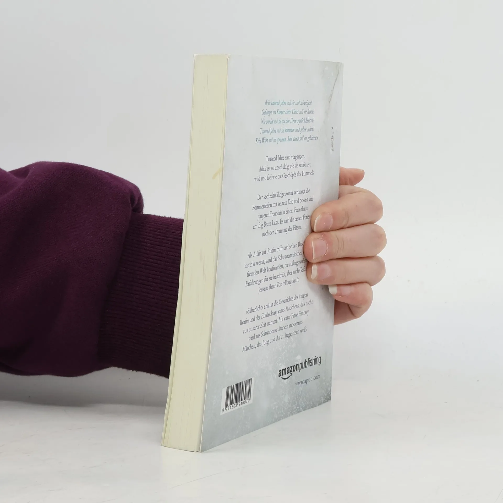 »Für tausend Jahre soll sie still schweigen! Gefangen im Körper eines Tieres soll sie leben! Nie wieder soll sie zu den Ihren zurückkehren! Tausend Jahre soll sie kommen und gehen sehen! Kein Wort soll sie sprechen, kein Kind soll sie gebären!« Tausend Jahre sind vergangen. Adair ist so unschuldig wie sie schön ist, wild und frei wie die Geschöpfe des Himmels. Der sechzehnjährige Ronin verbringt die Sommerferien mit seinem Dad und dessen viel jüngerer Freundin in einem Ferienhaus am Big Bears Lake. Es sind die ersten Ferien nach der Trennung der Eltern. Als Adair auf Ronin trifft und seinen Beschützerinstinkt weckt, wird das Schwanenmädchen mit einer fremden Welt konfrontiert, die außergewöhnliche Erfahrungen für sie bereithält, aber auch Gefahren jenseits ihrer Vorstellungskraft. „Silberlicht“ erzählt die Geschichte des jungen Ronin und der Entdeckung eines Mädchens, das nicht aus unserer Zeit stammt. Mit einer Prise Fantasy wird aus Schwanenzauber ein modernes Märchen, das Jung und Alt zu begeistern weiß.