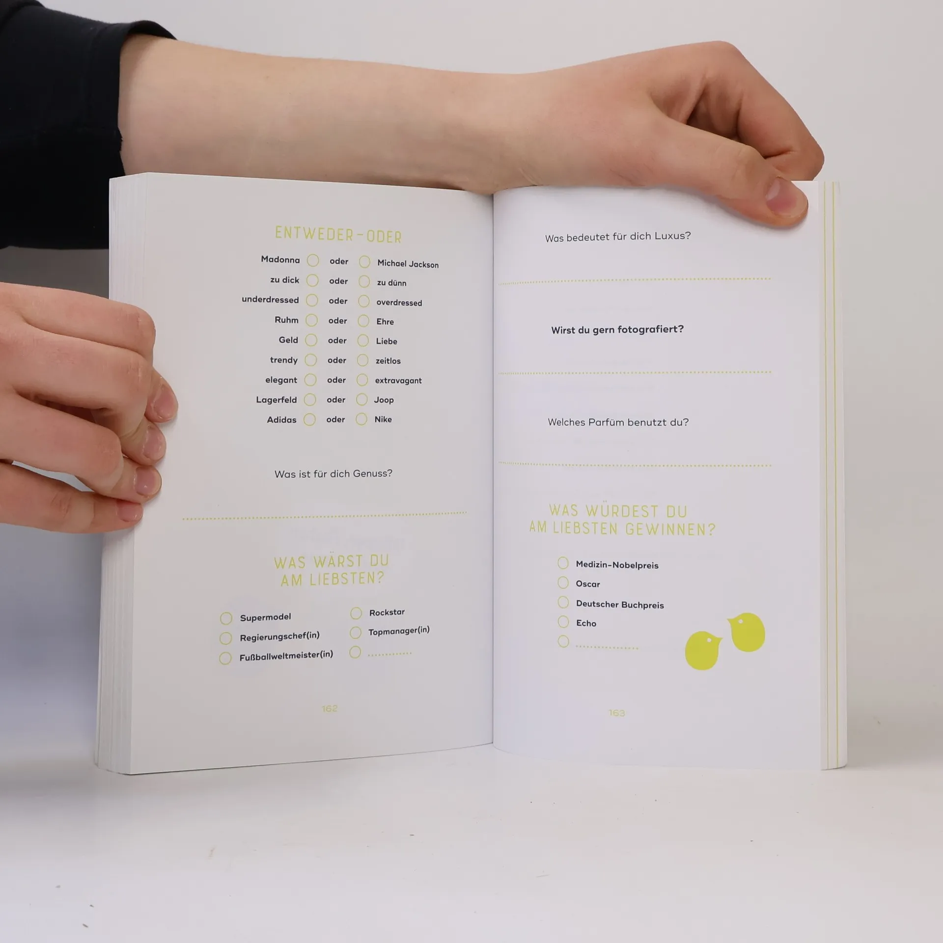 Dieses Album enthält über 1000 Fragen zu Leben und Charakter, die dazu anregen, sich selbst besser kennenzulernen. Es bietet Raum für persönliche Reflexionen und schafft ein einzigartiges Erinnerungsalbum, das wertvoll wie ein Zeitdokument und unterhaltsam ist.