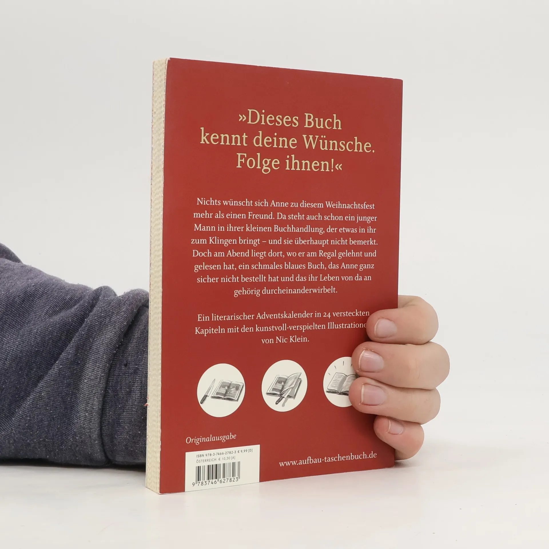 Ein literarischer Adventskalender, der die Wünsche des Lesers kennt. Täglich können zwei Seiten aufgerissen werden, um eine zauberhafte Liebesgeschichte mit literarischen Anspielungen zu entdecken. Die Buchhändlerin Anne, die Pech in der Liebe hat, sehnt sich in der Vorweihnachtszeit nach einem besonderen Mann, der ihr Leben verändert.