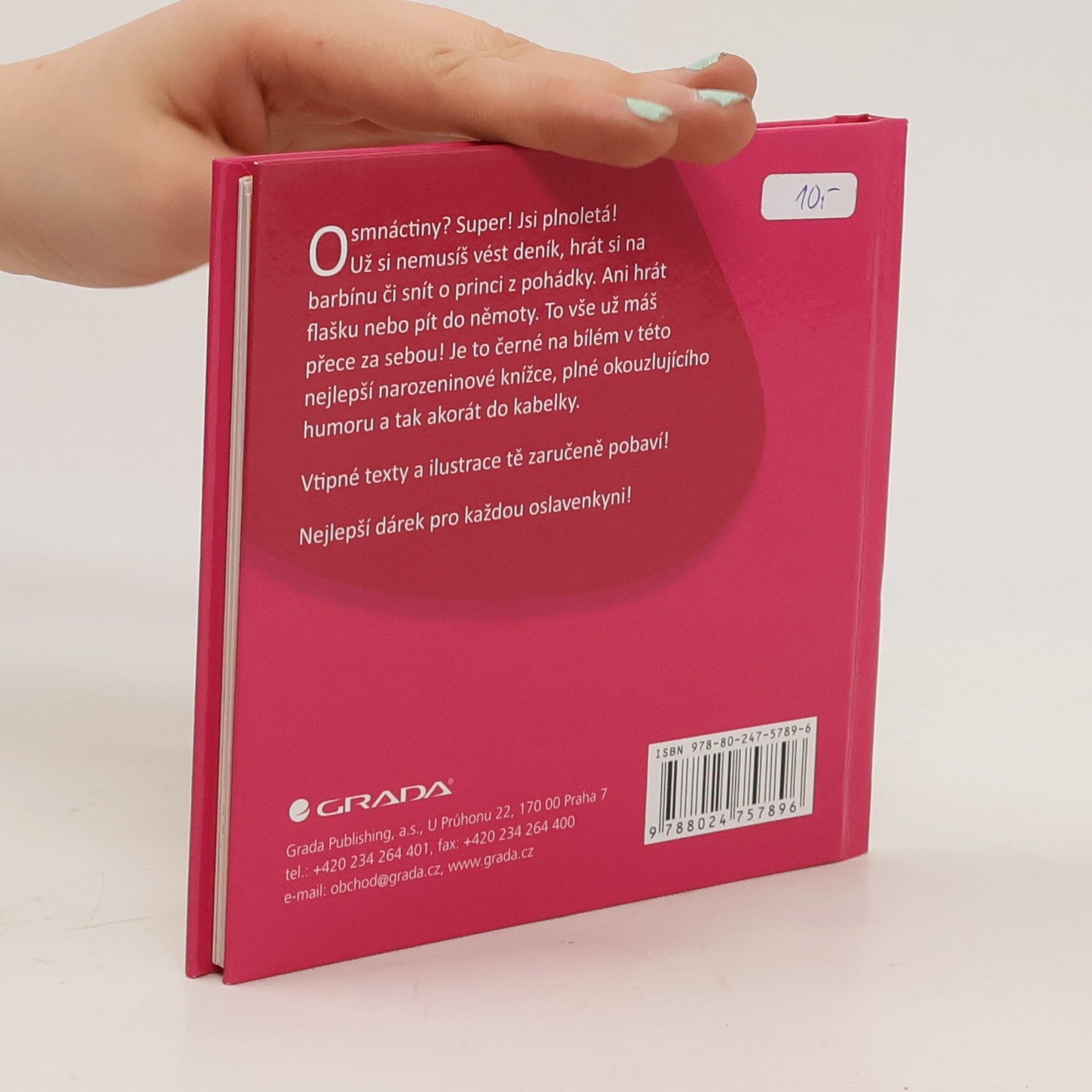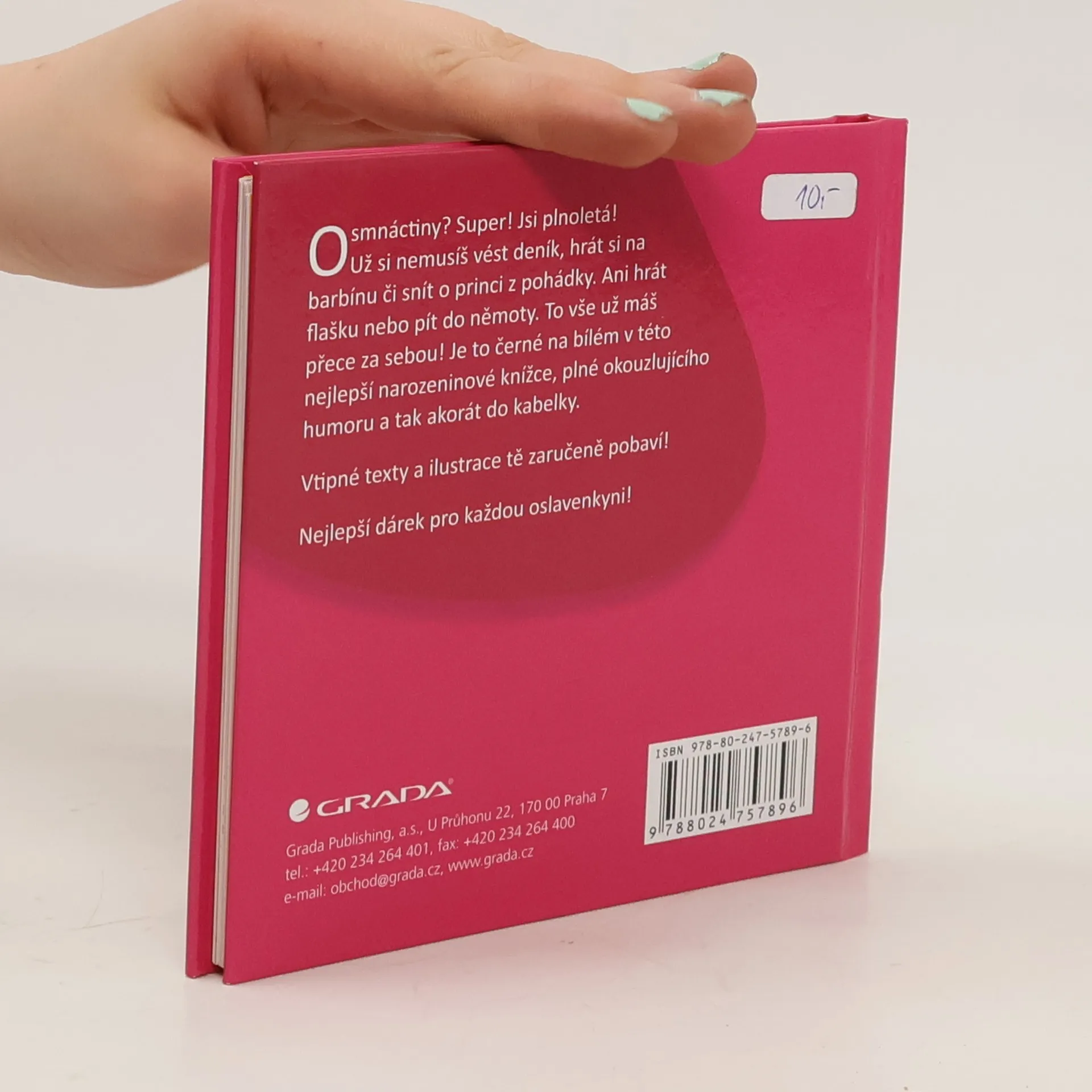 Co zaručeně potěší každou osmnáctiletou ženu? Tato vtipná a humorná kniha jí určitě zvedne náladu a rozesměje ji na plné kolo. Pro každou kamarádku, sestru, dceru, vnučku je to ten nejlepší dárek! Konečně se dozví, že už si nikdy nemusí vést deník, hrát si na barbínu, dělat se starší, snít o princi z pohádky, číst Bravíčko, slyšet na roztomiloučké přezdívečky nebo chodit v zimě s holým pupíkem. Humorný text a vtipné ilustrace ji zaručeně pobaví!