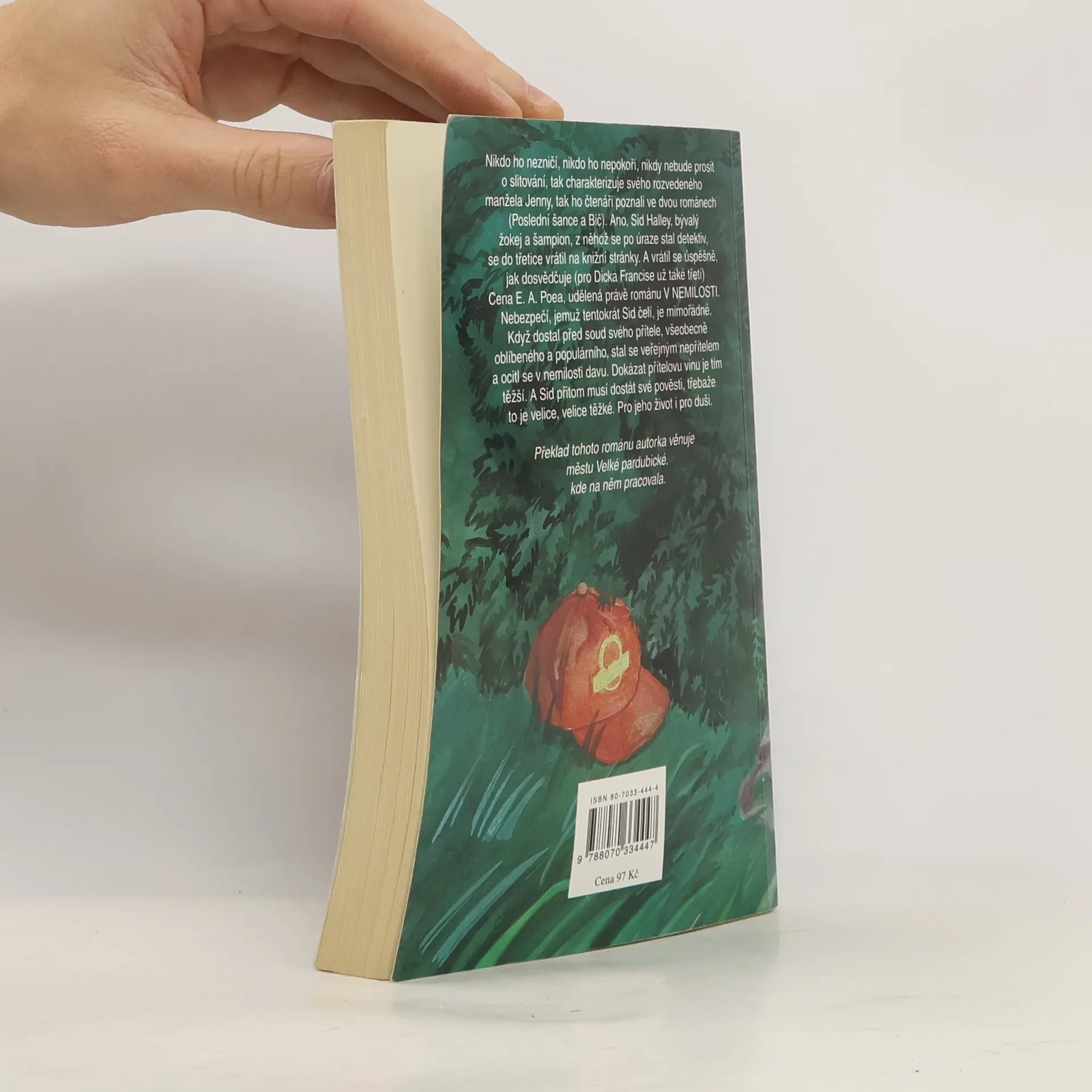 Nikdo ho nezničí, nikdo ho nepokoří, nikdy nebude prosit o slitování, tak charakterizuje svého rozvedeného manžela Jenny, tak ho čtenáři poznali ve dvou románech (Poslední šance a Bič). Ano, Sid Halley, bývalý žokej a šampion, z něhož se po úraze stal detektiv, se do třetice vrátil na knižní stránky. A vrátil se úspěšně, jak dosvědčuje (pro Dicka Francise už také třetí) Cena E. A. Poea, udělená právě románu V nemilosti. Nebezpečí, jemuž tentokrát Sid čelí, je mimořádné. Když dostal před soud svého přítele, všeobecně oblíbeného a populárního, stal se veřejným nepřítelem a ocitl se v nemilosti davu. Dokázat přítelovu vinu je tím těžší. A Sid přitom musí dostát své pověsti, třebaže to je velice těžké. Pro jeho další život i pro duši.