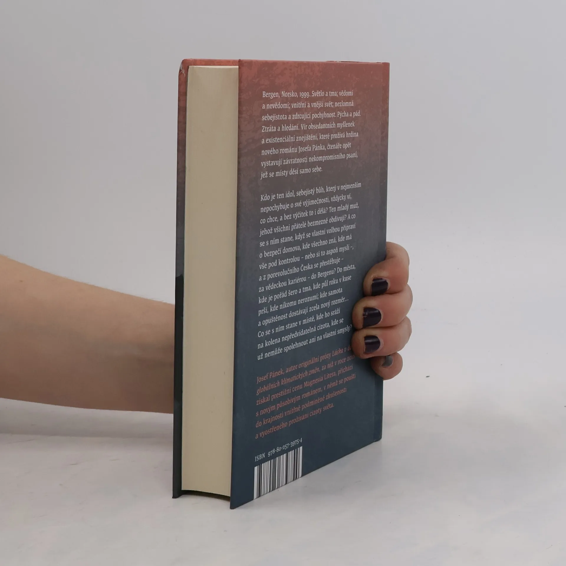 Bergen, Norsko, 1999. Světlo a tma; vědomí a nevědomí; vnitřní a vnější svět; nezlomná sebejistota a zdrcující pochybnost. Pýcha a pád. Ztráta a hledání. Vír obsedantních myšlenek a existenciální znejištění, které prožívá hrdina nového románu Josefa Pánka, čtenáře opět vystavují závratnosti nekompromisního psaní, jež se místy děsí samo sebe. Kdo je ten idol, sebejistý bůh, který v nejmenším nepochybuje o své výjimečnosti, vždycky ví, co chce, a bez výčitek to i dělá? Ten mladý muž, jehož všichni přátelé bezmezně obdivují? A co se s ním stane, když se vlastní volbou připraví o bezpečí domova, kde všechno zná, kde má vše pod kontrolou – nebo si to aspoň myslí –, a z porevolučního Česka se přestěhuje – za vědeckou kariérou – do Bergenu? Do města, kde je pořád šero a tma, kde půl roku v kuse prší, kde nikomu nerozumí; kde samota a opuštěnost dostávají zcela nový rozměr… Co se s ním stane v místě, kde ho sráží na kolena nepředvídatelná cizota, kde se už nemůže spolehnout ani na vlastní smysly? Josef Pánek, autor originální prózy Láska v době globálních klimatických změn, za niž v roce 2018 získal prestižní cenu Magnesia Litera, přichází s novým působivým románem, v němž se pouští do krajnosti vnitřně podmíněné zkušenosti a vyostřeného prožívání cizoty světa.