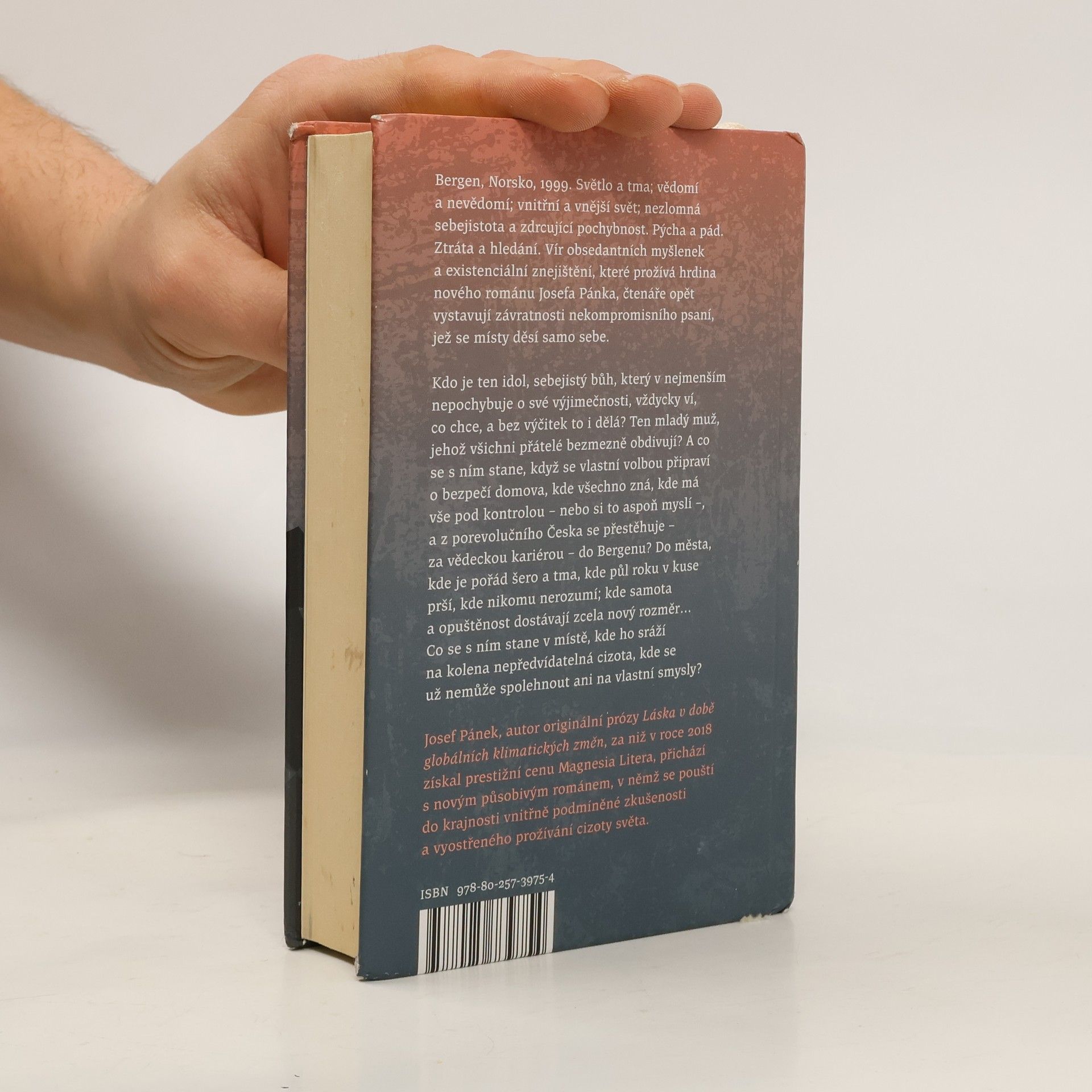 Bergen, Norsko, 1999. Světlo a tma; vědomí a nevědomí; vnitřní a vnější svět; nezlomná sebejistota a zdrcující pochybnost. Pýcha a pád. Ztráta a hledání. Vír obsedantních myšlenek a existenciální znejištění, které prožívá hrdina nového románu Josefa Pánka, čtenáře opět vystavují závratnosti nekompromisního psaní, jež se místy děsí samo sebe. Kdo je ten idol, sebejistý bůh, který v nejmenším nepochybuje o své výjimečnosti, vždycky ví, co chce, a bez výčitek to i dělá? Ten mladý muž, jehož všichni přátelé bezmezně obdivují? A co se s ním stane, když se vlastní volbou připraví o bezpečí domova, kde všechno zná, kde má vše pod kontrolou – nebo si to aspoň myslí –, a z porevolučního Česka se přestěhuje – za vědeckou kariérou – do Bergenu? Do města, kde je pořád šero a tma, kde půl roku v kuse prší, kde nikomu nerozumí; kde samota a opuštěnost dostávají zcela nový rozměr… Co se s ním stane v místě, kde ho sráží na kolena nepředvídatelná cizota, kde se už nemůže spolehnout ani na vlastní smysly? Josef Pánek, autor originální prózy Láska v době globálních klimatických změn, za niž v roce 2018 získal prestižní cenu Magnesia Litera, přichází s novým působivým románem, v němž se pouští do krajnosti vnitřně podmíněné zkušenosti a vyostřeného prožívání cizoty světa.