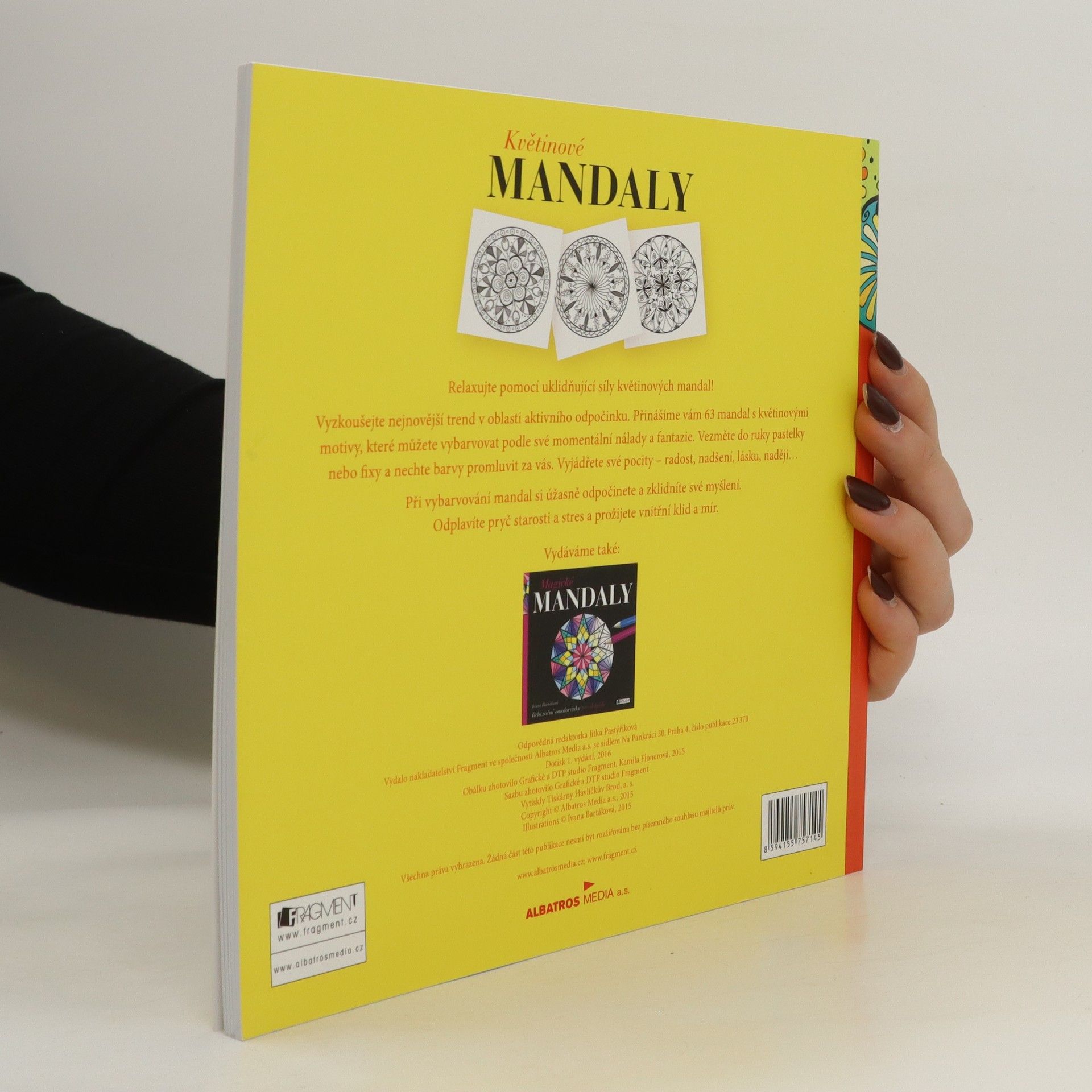Relaxujte pomocí uklidňující síly květinových mandal! Vyzkoušejte nejnovější trend v oblasti aktivního odpočinku. Přinášíme vám 63 mandal s květinovými motivy, které můžete vybarvovat podle své momentální nálady a fantazie. Vezměte do ruky pastelky nebo fixy a nechte barvy promluvit za vás. Vyjádřete své pocity – radost, nadšení, lásku, naději… Při vybarvování mandal si úžasně odpočinete a zklidníte své myšlení. Odplavíte pryč starosti a stres a prožijete vnitřní klid a mír.