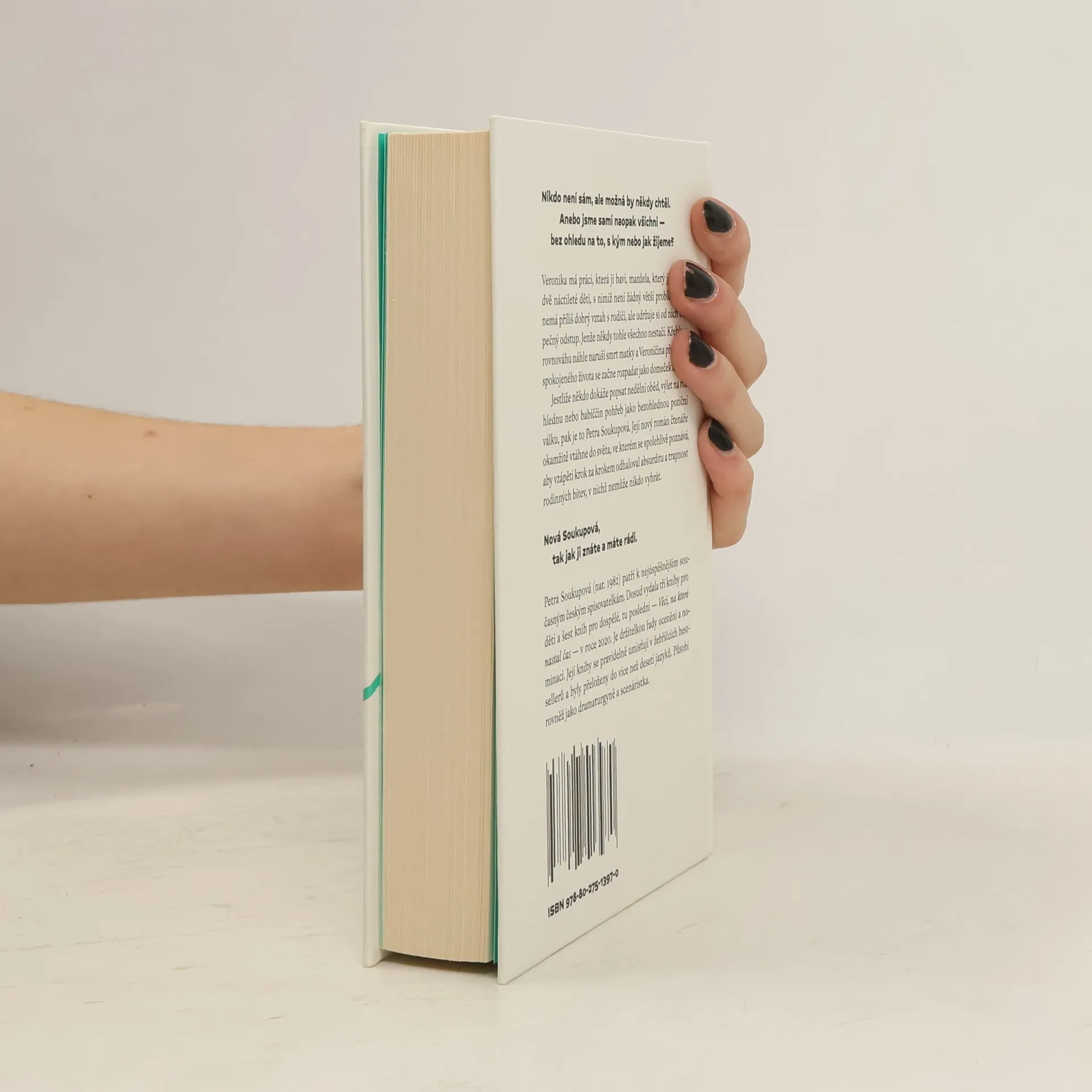 Nikdo není sám, ale možná by někdy chtěl. Anebo jsme sami naopak všichni — bez ohledu na to, s kým nebo jak žijeme?Veronika má práci, která ji baví, manžela, který jí rozumí, dvě náctileté děti, s nimiž není žádný větší problém. Sice nemá příliš dobrý vztah s rodiči, ale udržuje si od nich bezpečný odstup. Jenže někdy tohle všechno nestačí. Křehkou rovnováhu náhle naruší smrt matky a Veroničina představa spokojeného života se začne rozpadat jako domeček z karet.Jestliže někdo dokáže popsat nedělní oběd, výlet na rozhlednu nebo babiččin pohřeb jako bezohlednou poziční válku, pak je to Petra Soukupová. Její nový román čtenáře okamžitě vtáhne do světa, ve kterém se spolehlivě poznává, aby vzápětí krok za krokem odhaloval absurditu a trapnost rodinných bitev, v nichž nemůže nikdo vyhrát.Nová Soukupová, tak jak ji znáte a máte rádi.