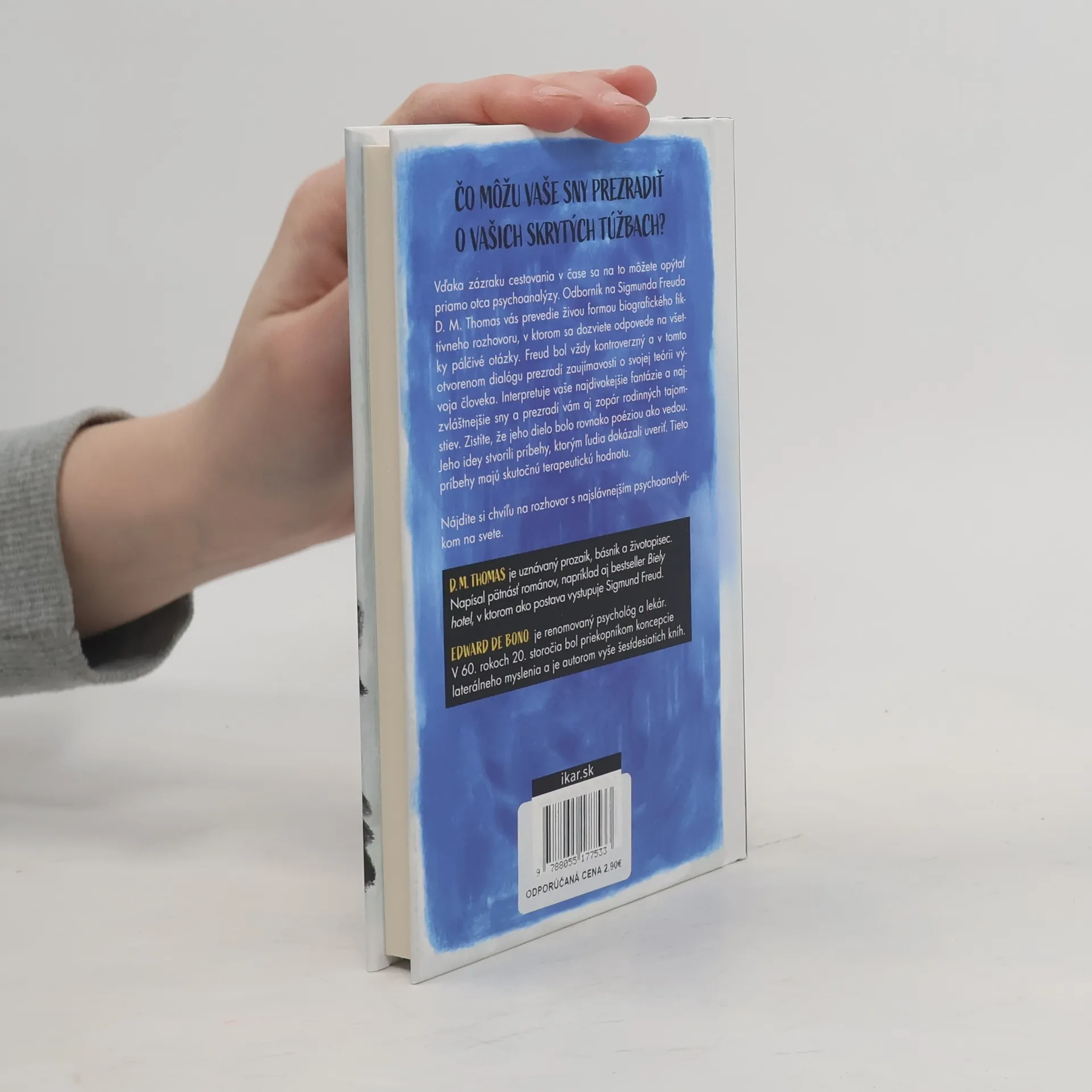 Nájdite si čas na priateľský rozhovor a objavte vnútorný život fascinujúceho psychoanalytika. Odborník na Sigmunda Freuda D. M. Thomas vás prevedie biografickým fiktívnym rozhovorom, v ktorom sa dozviete odpovede na pálčivé otázky. Freud bol kontroverzný a v tomto dialógu prezradí zaujímavosti o svojej teórii vývoja človeka, interpretuje vaše fantázie a sny a odhalí rodinné tajomstvá. Jeho dielo bolo rovnako poéziou ako vedou, pričom jeho idey stvorili príbehy s terapeutickou hodnotou. Ľudský mozog túži po vysvetleniach, ktoré spájajú veci a objasňujú, prečo sa niečo deje, čím umožňujú predpovedať budúcnosť. Hľadanie takýchto objasnení je súčasťou ľudskej existencie. Usporiadanie vecí najprv vysvetľovala mágia a náboženstvo, potom prišla veda a kdesi na rozmedzí sa ocitol Freud. Jeho dielo bolo majstrovskou ukážkou vysvetľovania, skúmal vlastnú, často deprimovanú, myseľ aj mysle svojich pacientov. Jeho teórie šokovali a dráždili zvedavosť, zabezpečili mu ústredné postavenie v psychológii, aj keď nie vždy boli pravdivé vo vedeckom zmysle. Freud stále ovplyvňuje spôsob, akým uvažujeme o sebe a o ostatných. Toto čítanie je vhodné pre každého, kto chce rozšíriť svoj rozhľad a má záujem o psychológiu. Predslov napísal Edward de Bono.