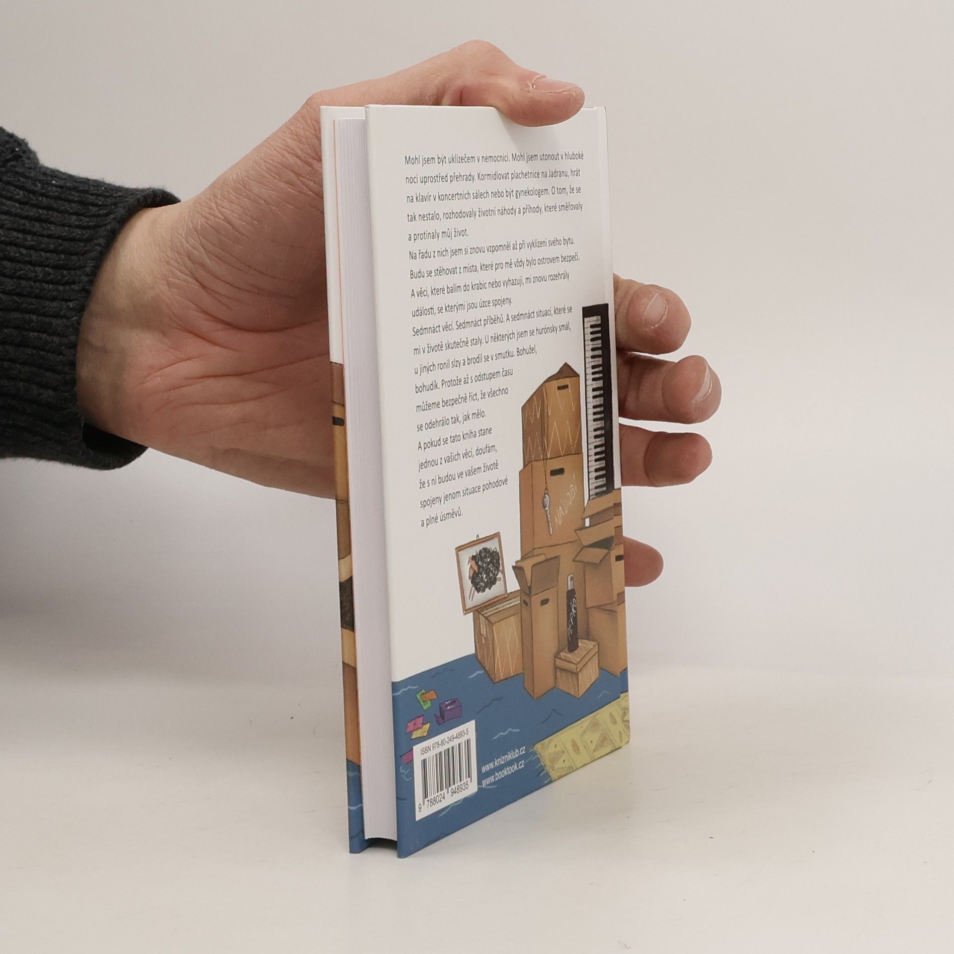 Mohl jsem být uklízečem v nemocnici. Mohl jsem utonout v hluboké noci uprostřed přehrady. Kormidlovat plachetnice na Jadranu, hrát na klavír v koncertních sálech nebo být gynekologem. O tom, že se tak nestalo, rozhodovaly životní náhody a příhody, které směřovaly a protínaly můj život. Na řadu z nich jsem si znovu vzpomněl až při vyklízení svého bytu. Budu se stěhovat z místa, které pro mě vždy bylo ostrovem bezpečí. A věci, které balím do krabic nebo vyhazuji, mi znovu rozehrály události, se kterými jsou úzce spojeny. Sedmnáct věcí. Sedmnáct příběhů. A sedmnáct situací, které se mi v životě skutečně staly. U některých jsem se hurónsky smál, u jiných ronil slzy a brodil se v smutku. Bohužel, bohudík. Protože až s odstupem času můžeme bezpečně říct, že všechno se odehrálo tak, jak mělo. A pokud se tato kniha stane jednou z vašich věcí, doufám, že s ní budou ve vašem životě spojeny jenom situace pohodové a plné úsměvů.