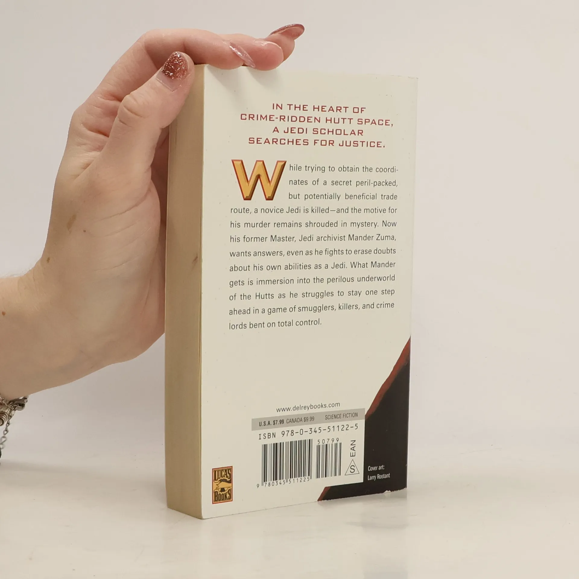 In the heart of crime-ridden Hutt Space, a Jedi Scholar searches for justice. While trying to obtain the coordinates of a secret, peril-packed, but potentially beneficial trade route, a novice Jedi is killed—and the motive for his murder remains shrouded in mystery. Now his former Master, Jedi archivist Mander Zuma, wants answers, even as he fights to erase doubts about his own abilities as a Jedi. What Mander gets is immersion into the perilous underworld of the Hutts as he struggles to stay one step ahead in a game of smugglers, killers, and crime lords bent on total control.