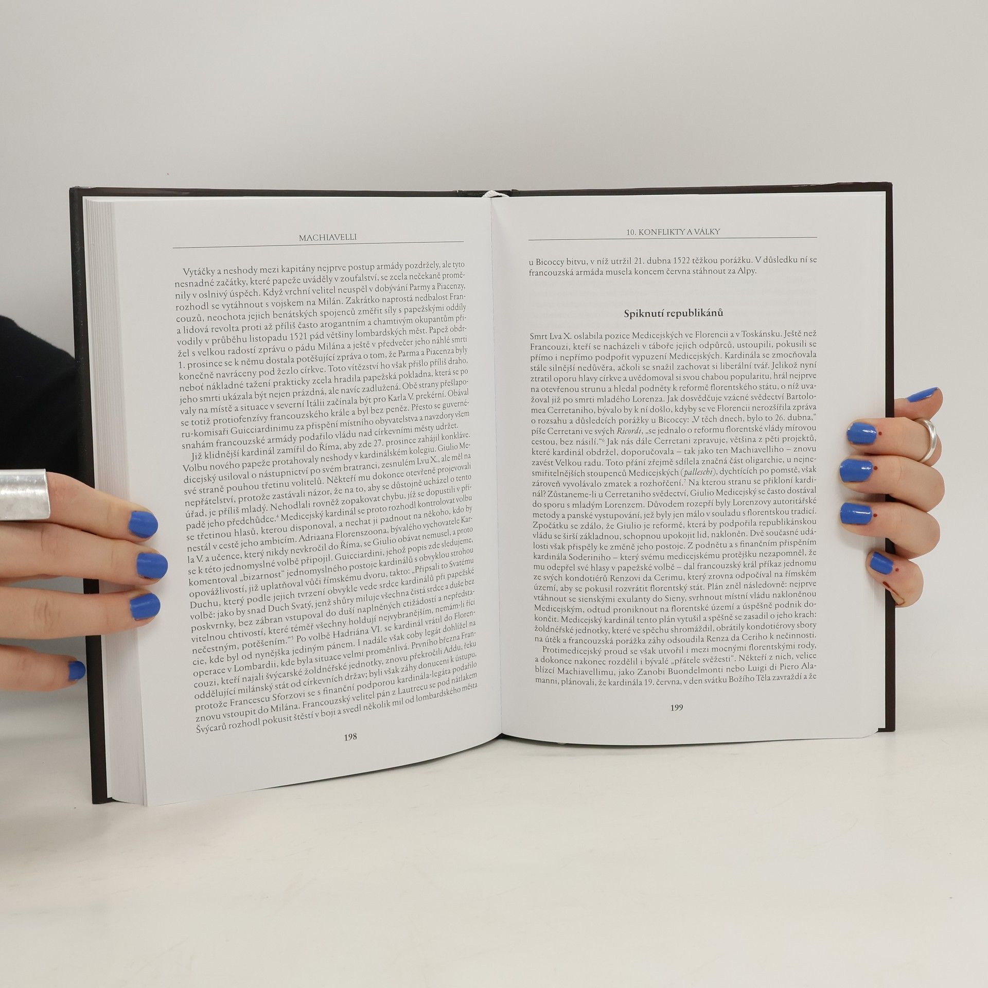 Niccolo Machiavelli (1469–1527) byl autorem nejen proslulého traktátu Vladař, který obsahuje politické úvahy odhalující a popisující mechanismy fungování moci, a na který navázala díla dalších teoretiků moci. Přestože je vnímán jako duchovní otec tzv. machiavelismu, tj. cynické politiky prováděné bez ohledu na použité prostředky v zájmu vyššího cíle, byl osobností mnohem komplexnější. Z bohaté soukromé korespondence vystupuje diplomat oddaný florentské republice, jíž celý život sloužil, i veřejnému blahu, vnímající pozorně bouřlivé události v Itálii i v ostatní Evropě. Emeritní profesorka na pařížské Sorbonně Marina Marietti, autorka četných studií o italské středověké a renesanční literatuře, podává ve své práci obraz Machiavelliho na základě studia jeho díla (dopisů, básní, historických pojednání i komedií). Vidí ho jako zbožného člověka a vlastence, myslitele a bouřlivého vizionáře, který dokázal zachytit svoji dobu s neobvyklou politickou inteligencí a notnou dávkou předvídavosti.