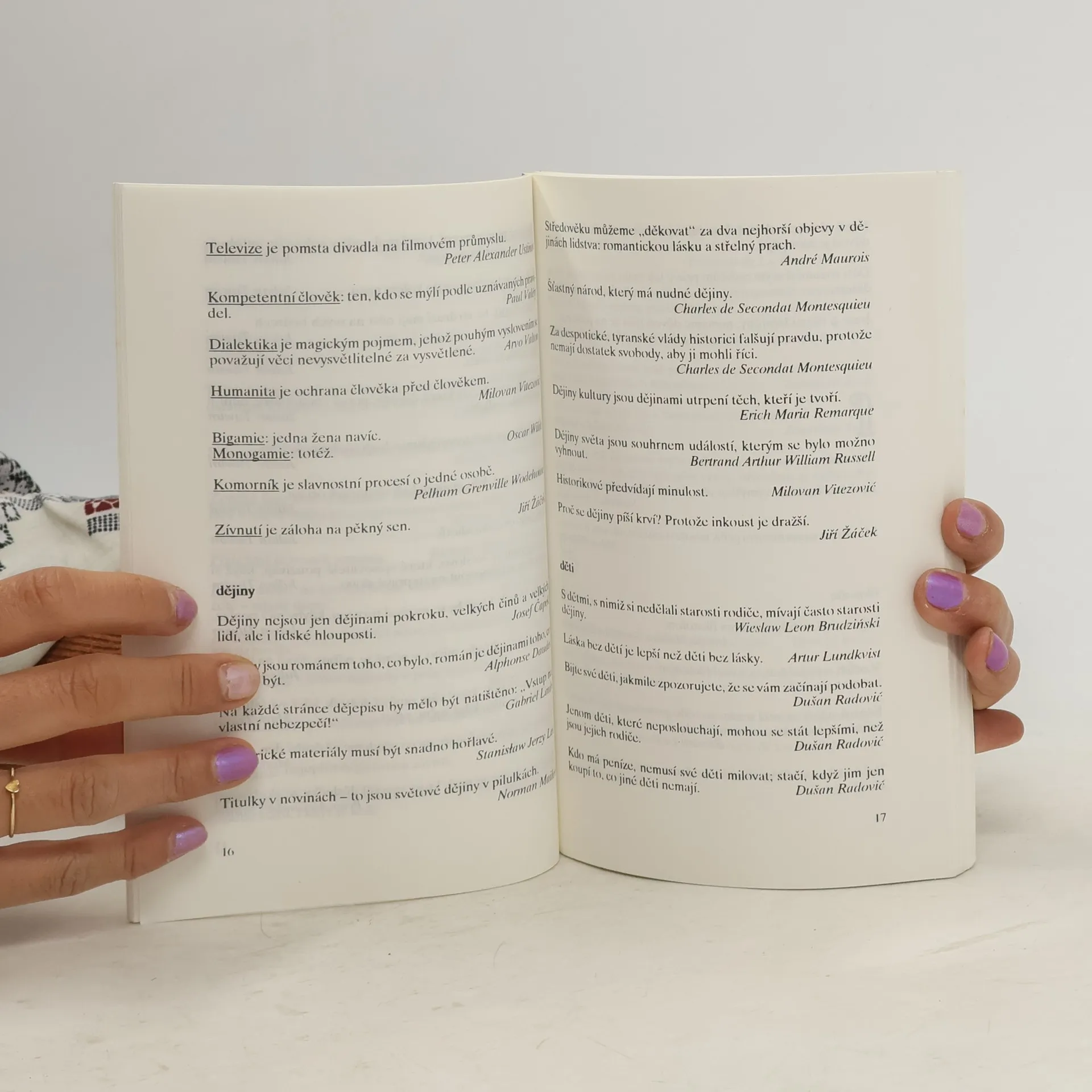 Abecedně řazené výroky slavných osobností glosují kladné i záporné lidské vlastnosti