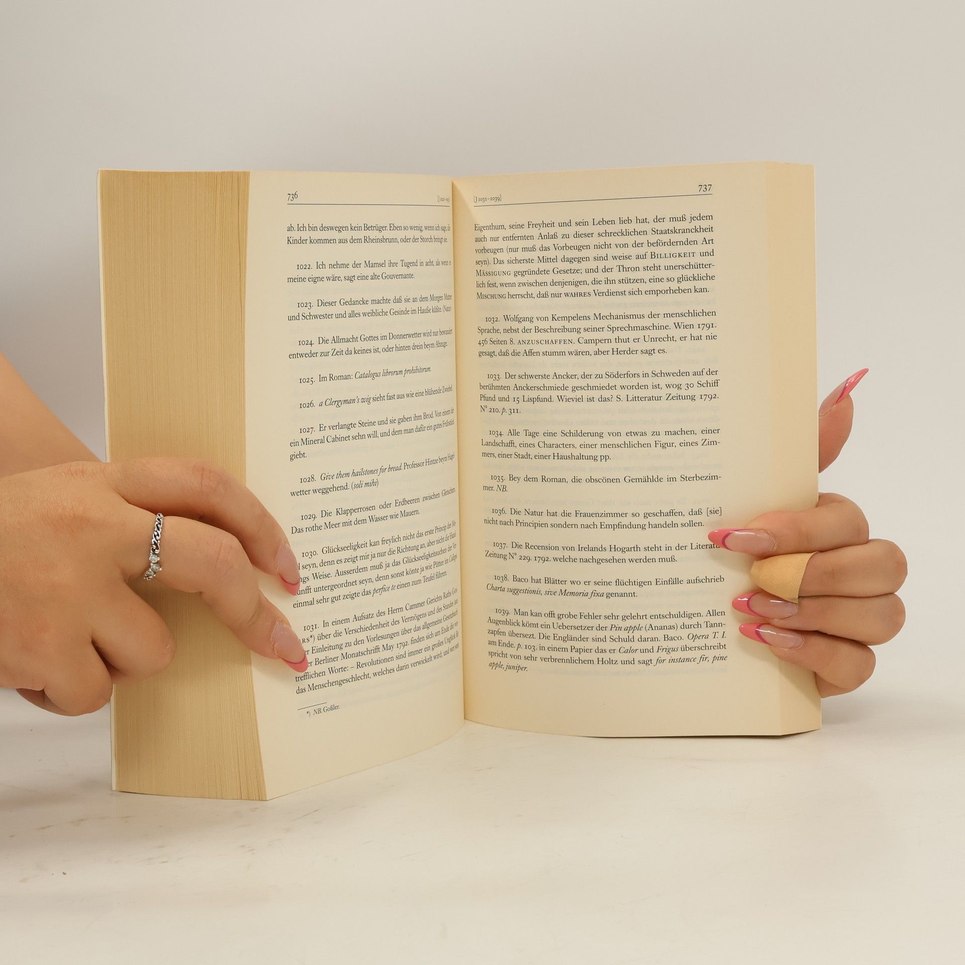 Kurt Tucholsky beschreibt Lichtenberg als einen einzigartigen Geist, dessen Aphorismen bedeutenden Einfluss hatten. Lichtenberg notierte 33 Jahre lang seine Gedanken in „Sudelbüchern“, aus denen nur eine Auswahl veröffentlicht wurde. Die Leitzmann-Edition, die nun in einem Band erscheint, gilt als entscheidend für die Wiederentdeckung seines Werkes.