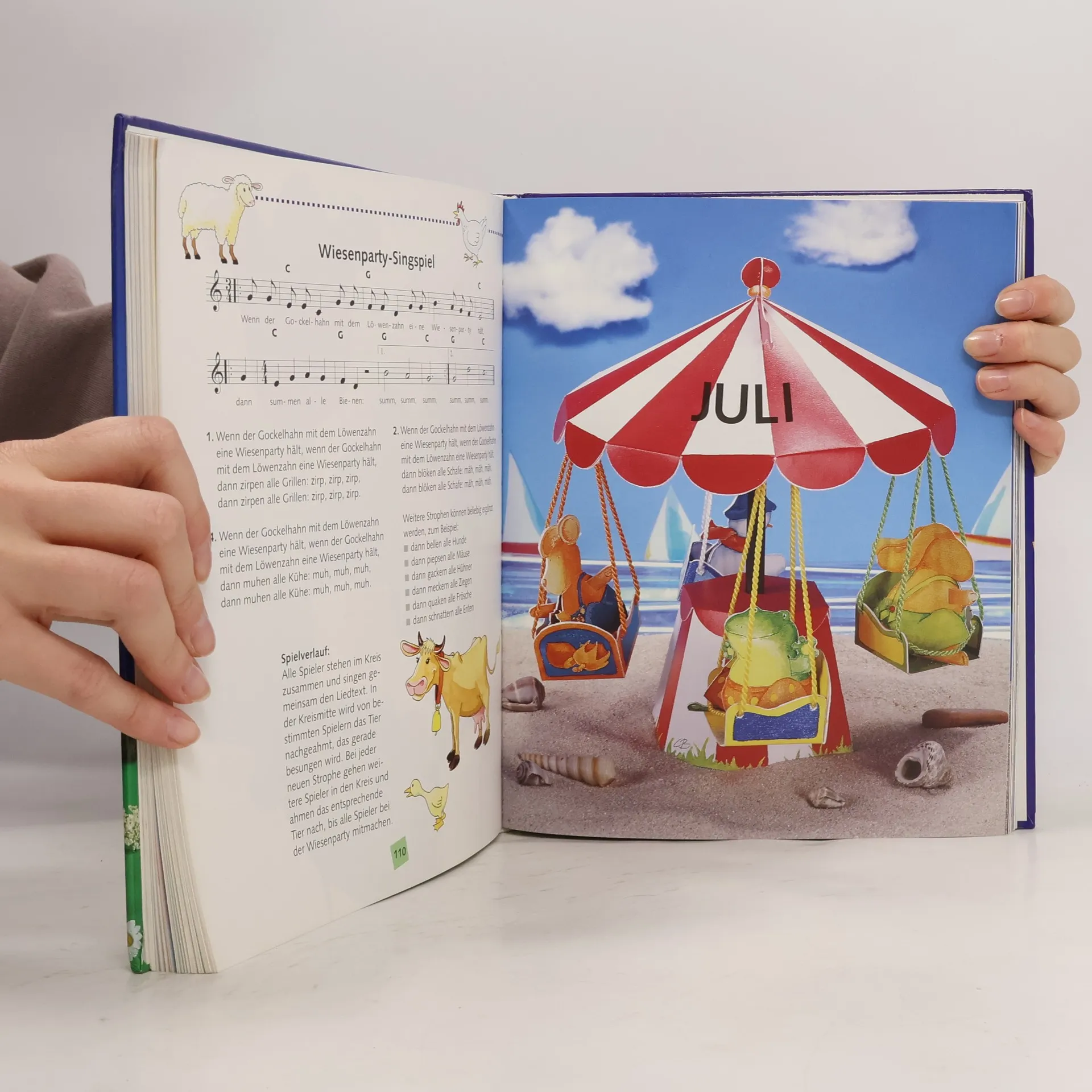Dieses liebevoll illustrierte Kinderbeschäftigungsbuch bietet über 200 kreative Ideen für jeden Monat des Jahres. Es enthält Gestaltungsideen für Feste, Spiele, Rezepte, Lieder, Gedichte und Schritt-für-Schritt-Anleitungen zum Basteln und Spielen, inklusive eines drehbaren Karussells mit Figuren.