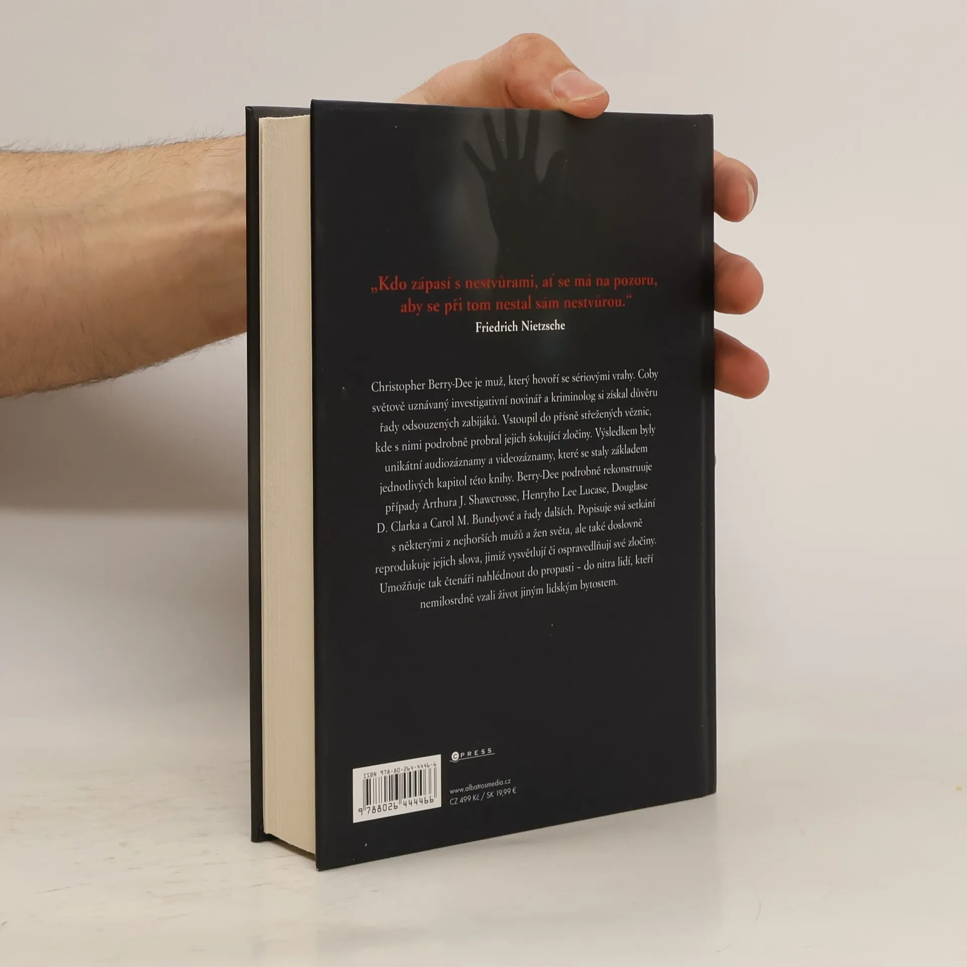 Christopher Berry-Dee hovoří se sériovými vrahy. Coby uznávaný kriminolog si získal důvěru řady odsouzených monster. Vstoupil do přísně střežených věznic, kde s nimi probral jejich šokující zločiny. Výsledkem je tato kniha. Berry-Dee rekonstruuje případy Arthura J. Shawcrosse, Henryho Lee Lucase, Douglase D. Clarka a Carol M. Bundyové a řady dalších. Popisuje svá setkání s těmi nejhoršími, ale také reprodukuje jejich slova, jimiž ospravedlňují své zločiny. A umožňuje tak čtenáři nahlédnout do propasti…