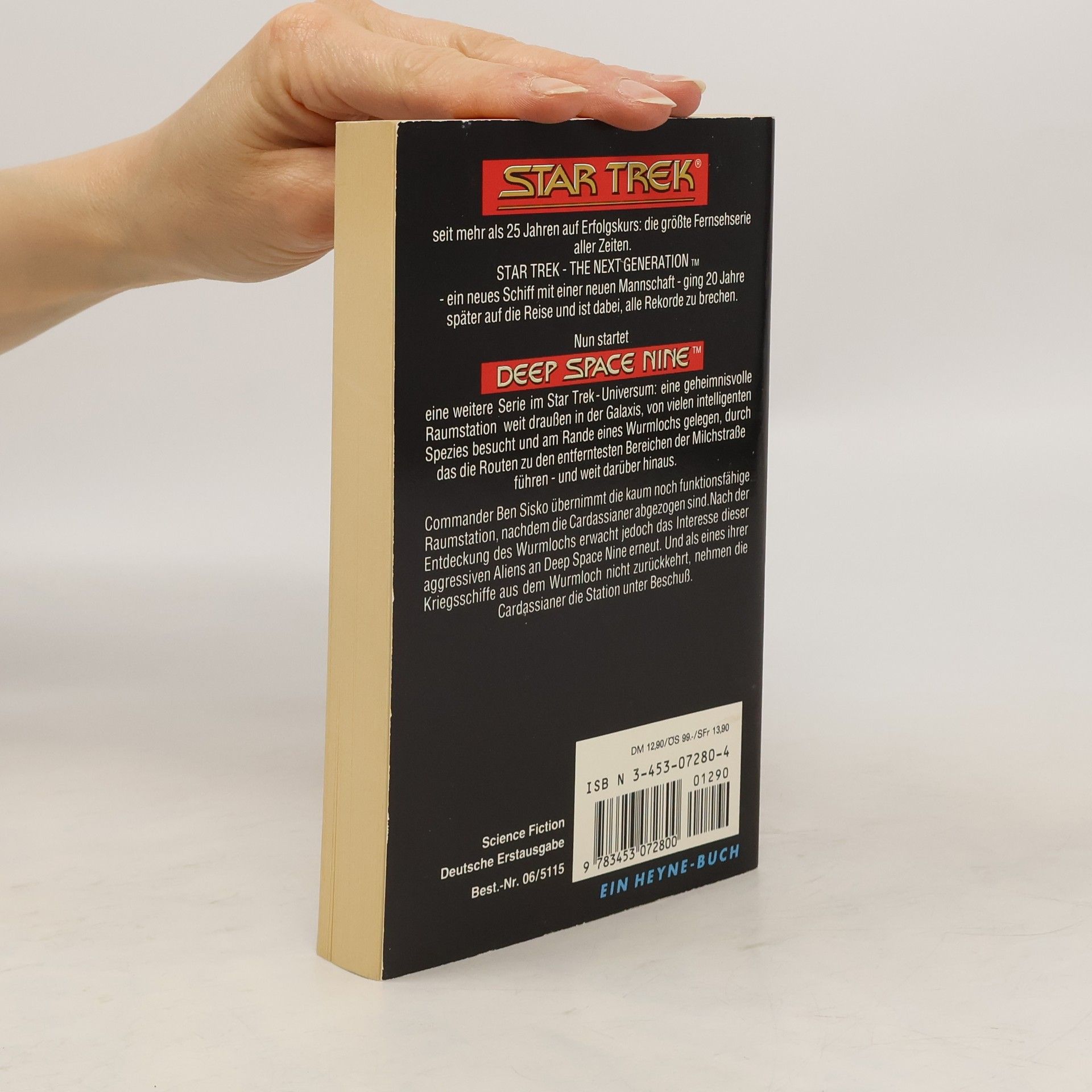 Star Trek. seit mehr als 25 Jahren auf Erfolgskurs: die größte Fernsehserie aller Zeiten. STAR TREK - THE NEXT GENERATION - ein neues Schiff mit einer neuen Mannschaft - ging 20 Jahre später auf die Reise und ist dabei, alle Rekorde zu brechen. Nun startet DEEP SPACE NINE eine weitere Serie im Star Trek- Universum: eine geheimnisvolle Raumstation weit draußen in der Galaxis, von vielen intelligenten Spezies besucht und am Rande eines Wurmlochs gelegen, durch das die Routen zu den entferntesten Bereichen der Milchstraße führen - und weit darüber hinaus. Commander Ben Sisko übernimmt die kaum noch funktionsfähige Raumstation, nachdem die Cardassianer abgezogen sind. Nach der Entdeckung des Wurmlochs erwacht jedoch das Interesse dieser aggressiven Aliens an Deep Space Nine erneut. Und als eines ihrer Kriegsschiffe aus dem Wurmloch nicht zurückkehrt, nehmen die Cardassianer die Station unter Beschuss. Science Fiction Deutsche Erstausgabe