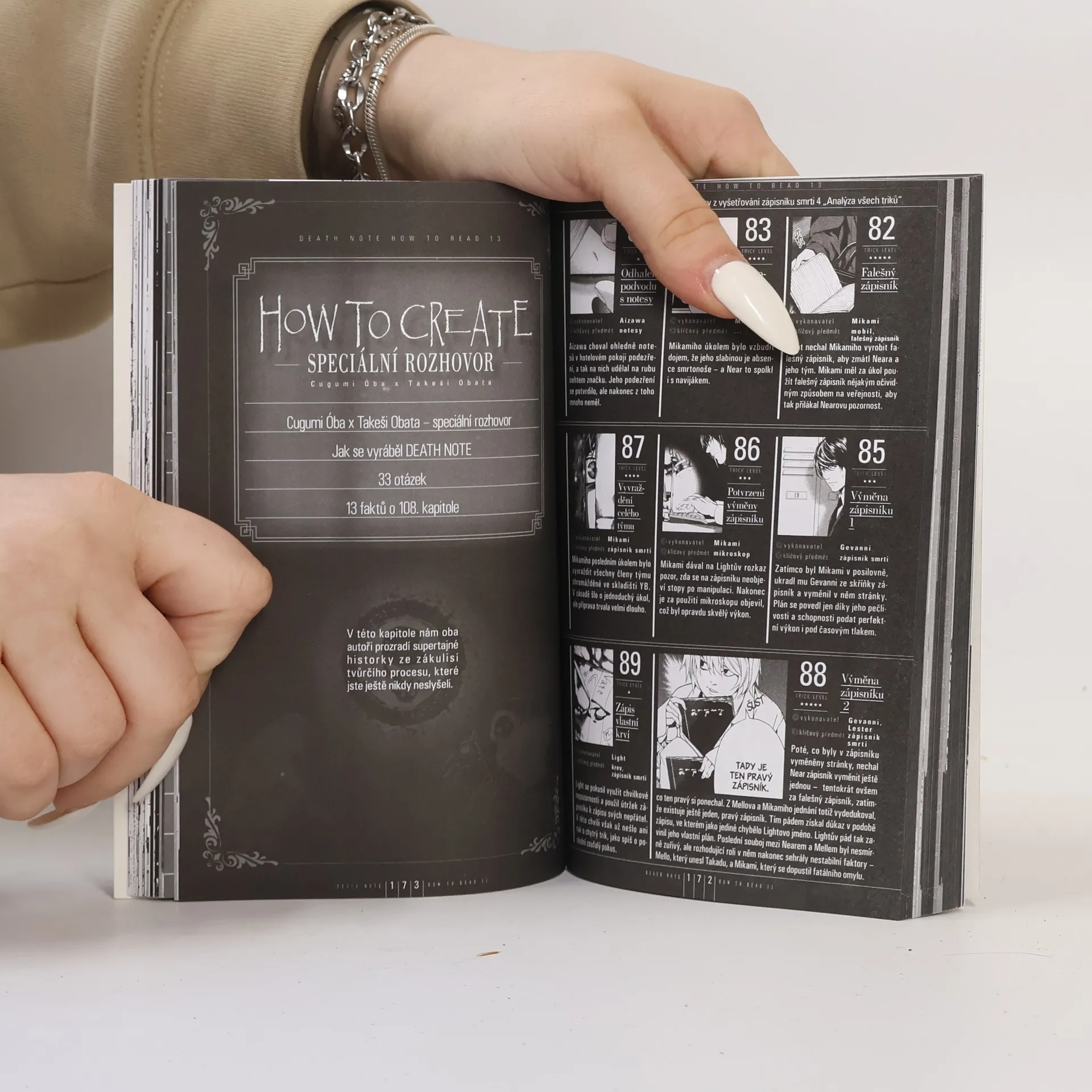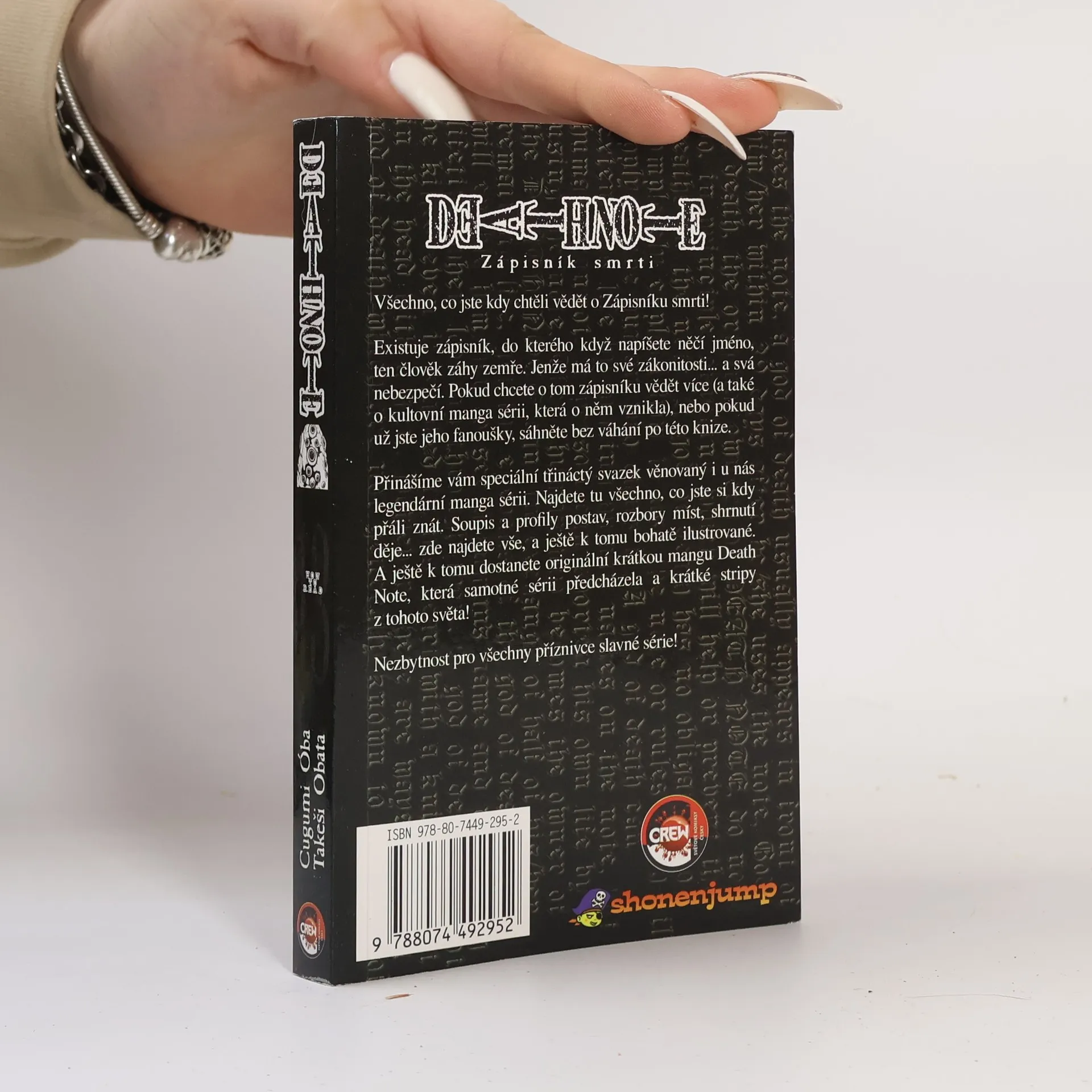 Všechno, co jste kdy chtěli vědět o Zápisníku smrti! Existuje zápisník, do kterého když napíšete něčí jméno, ten člověk do několika minut zemře. Jenže má to své zákonitosti... a svá nebezpečí. Pokud chcete o tom zápisníku vědět více (a také o kultovní manga sérii, která o něm vznikla), nebo pokud už jste jeho fanoušky, sáhněte bez váhání po této knize. Přinášíme vám speciální třináctý svazek věnovaný i u nás legendární manga sérii. Najdete tu všechno, co jste si kdy přáli znát. Soupis a profily postav, rozbory míst, shrnutí děje... zde najdete vše, a ještě k tomu bohatě ilustrované. A ještě k tomu dostanete originální krátkou mangu Death Note, která samotné sérii předcházela a krátké stripy z tohoto světa!