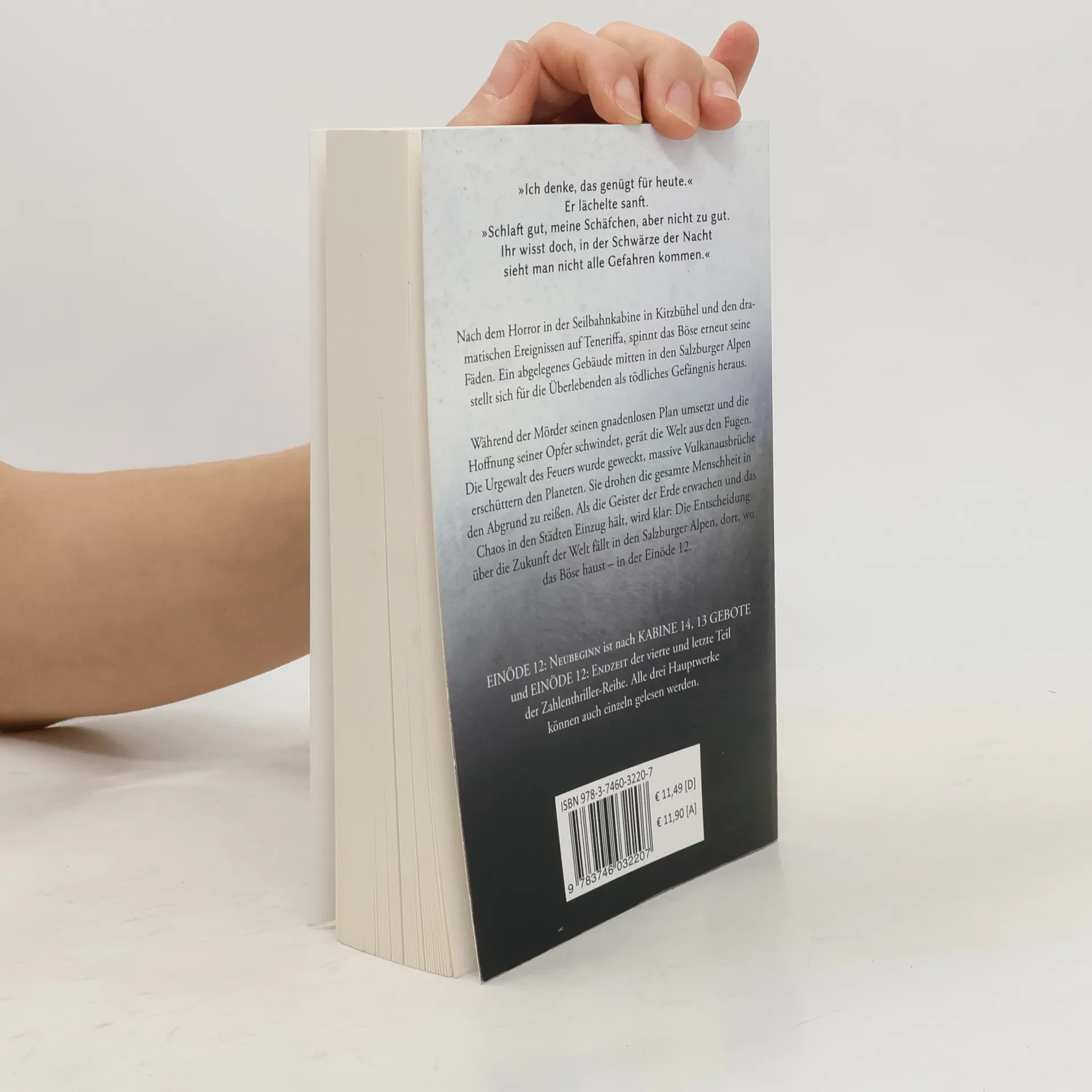 Nach den Schrecken in Kitzbühel und Teneriffa entfaltet sich das Böse erneut in einem abgelegenen Gebäude in den Salzburger Alpen, das sich als tödliches Gefängnis entpuppt. Während ein Mörder seinen Plan verfolgt, erschüttern Vulkanausbrüche die Welt. Die Entscheidung über die Zukunft der Menschheit fällt in der Einöde 12. Dies ist der vierte Teil der Zahlenthriller-Reihe.