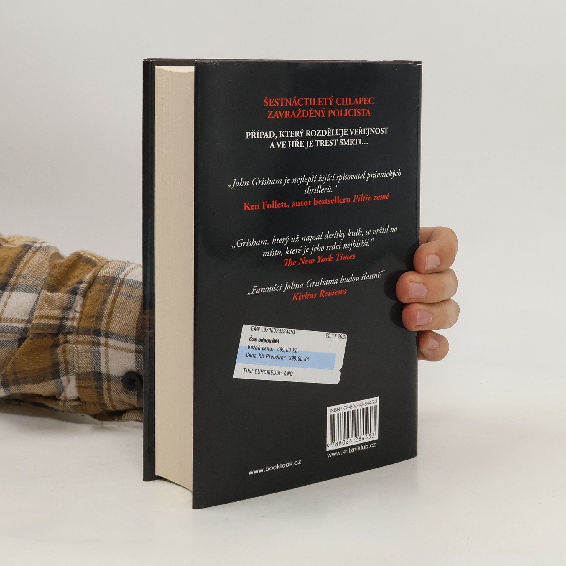 Právník Jake Brigance přijme obhajobu Drewa Gamblea, mladíka obviněného z vraždy policisty. Ostře sledovaný soudní proces rozděluje zdejší obyvatele – mnozí chtějí rychlý soud a trest smrti, ale Jake to vidí jinak. Jakmile zjistí o případu víc, pochopí, že musí udělat vše pro to, aby Drewa – kterému je pouhých šestnáct let – zachránil. Jakeovo odhodlání najít pravdu ohrožuje jeho kariéru i bezpečí jeho rodiny. Kniha Čas odpouštět je plná soudních machinací, maloměstských intrik a dějových zvratů, které jsou typické pro strhující příběhy Johna Grishama, který opět potvrzuje svou pověst mistra právnických thrillerů a výjimečného vypravěče.