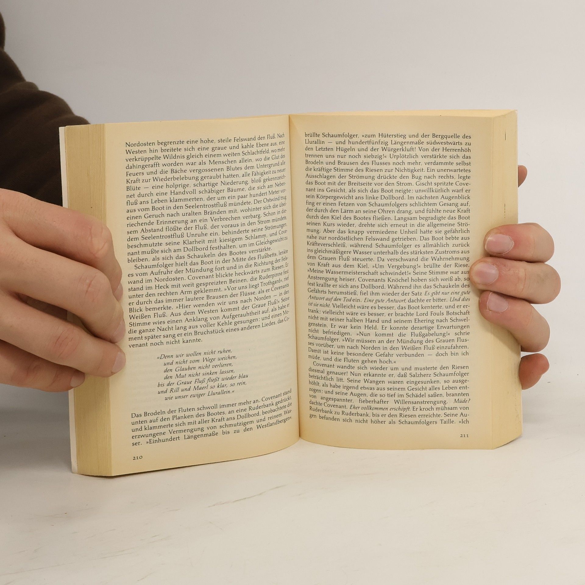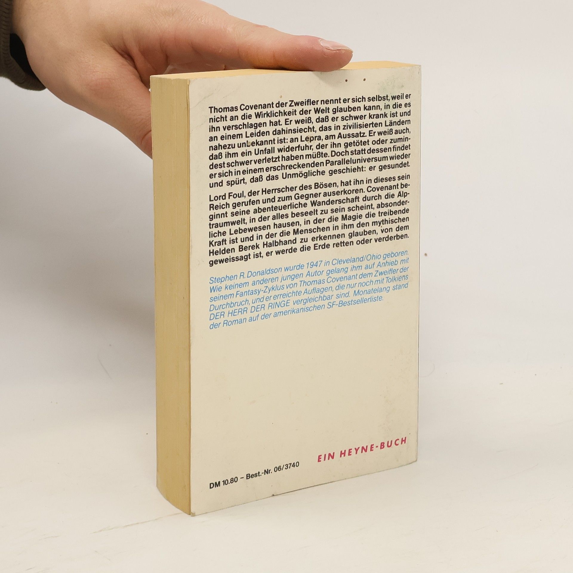 Thomas Covenant der Zweifler nennt er sich selbst, weil er nicht an die Wirklichkeit der Welt glauben kann, in die es ihn verschlagen hat. Er weiß, dass er schwer krank ist und an einem Leiden dahinsiecht, das in zivilisierten Ländern nahezu unbekannt ist: an Lepra, am Aussatz. Er weiß auch, dass ihm ein Unfall widerfuhr, der ihn getötet oder zumindest schwer verletzt haben müsste. Doch stattdessen findet er sich in einem erschreckenden Paralleluniversum wieder und spürt, dass das Unmögliche geschieht: er gesundet. Lord Foul, der Herrscher des Bösen, hat ihn in dieses sein Reich gerufen und zum Gegner auserkoren. Covenant beginnt seine abenteuerliche Wanderschaft durch die Alptraumwelt, in der alles beseelt zu sein scheint, absonderliche Lebewesen hausen, in der die Magie die treibende Kraft ist und in der die Menschen in ihm den mythischen Helden Berek Halbhand zu erkennen glauben, von dem geweissagt ist, er werde die Erde retten oder verderben.