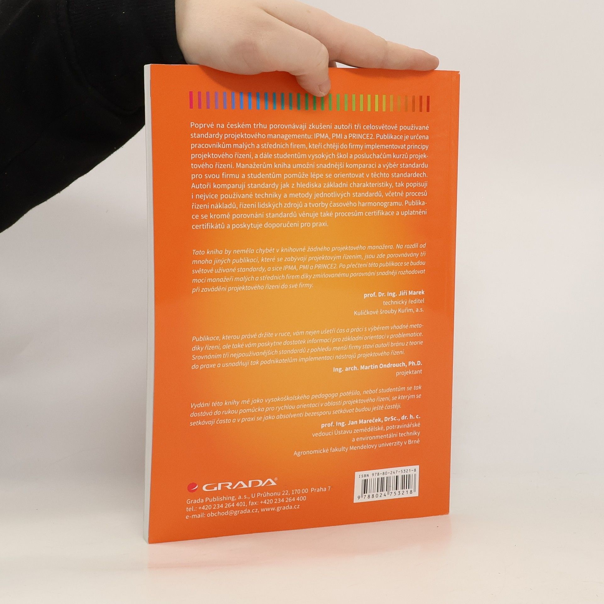 Poprvé na českém trhu porovnávají zkušení autoři tři celosvětově používané standardy projektového managementu: IPMA, PMI a PRINCE2. Publikace je určena pracovníkům malých a středních firem, kteří chtějí do firmy implementovat principy projektového řízení, a dále studentům vysokých škol a posluchačům kurzů projektového řízení. Manažerům kniha umožní snadnější komparaci a výběr standardu pro svou firmu a studentům pomůže lépe se orientovat v těchto standardech. Autoři komparují standardy jak z hlediska základní charakteristiky, tak popisují i nejvíce používané techniky a metody jednotlivých standardů, včetně procesů řízení nákladů, řízení lidských zdrojů a tvorby časového harmonogramu. Publikace se kromě porovnání standardů věnuje také procesům certifikace a uplatnění certifikátů a poskytuje doporučení pro praxi.