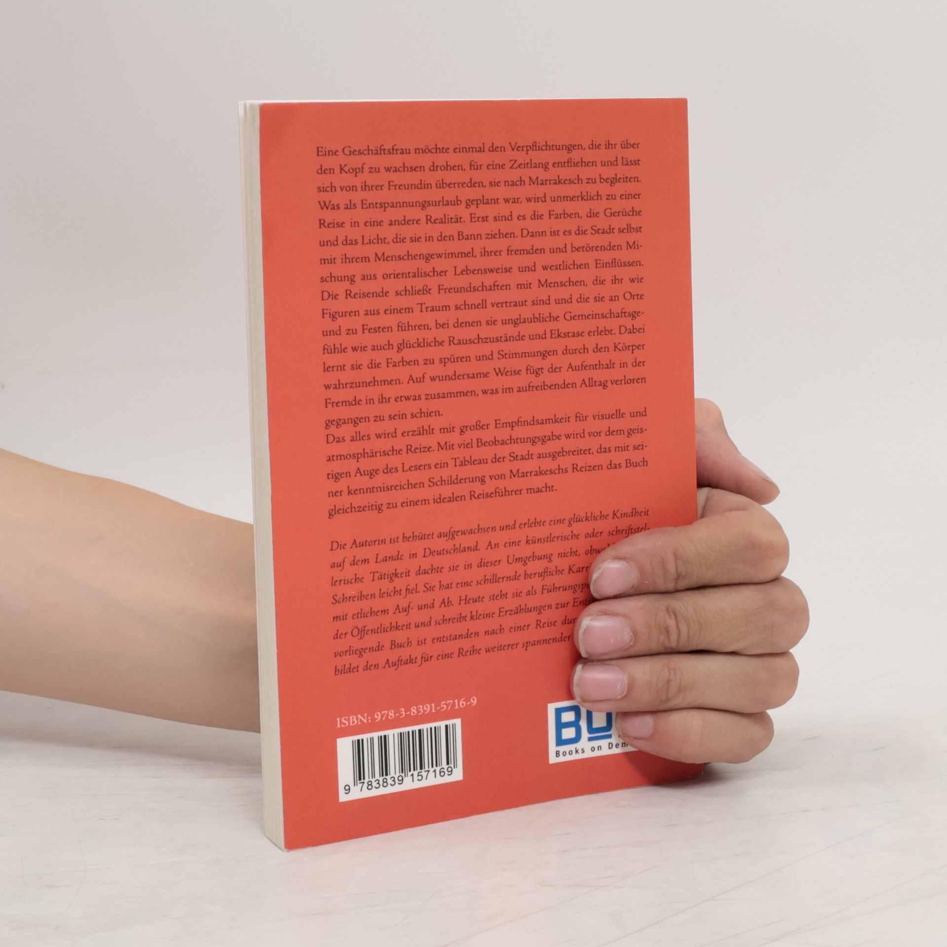 Eine Geschäftsfrau entflieht ihren Verpflichtungen und reist mit einer Freundin nach Marrakesch. Was als Entspannungsurlaub beginnt, verwandelt sich in eine Reise voller Farben, Gerüche und kultureller Erlebnisse. Sie schließt Freundschaften und entdeckt eine tiefere Verbindung zu sich selbst und der Stadt, die atmosphärisch und visuell eindrucksvoll beschrieben wird.