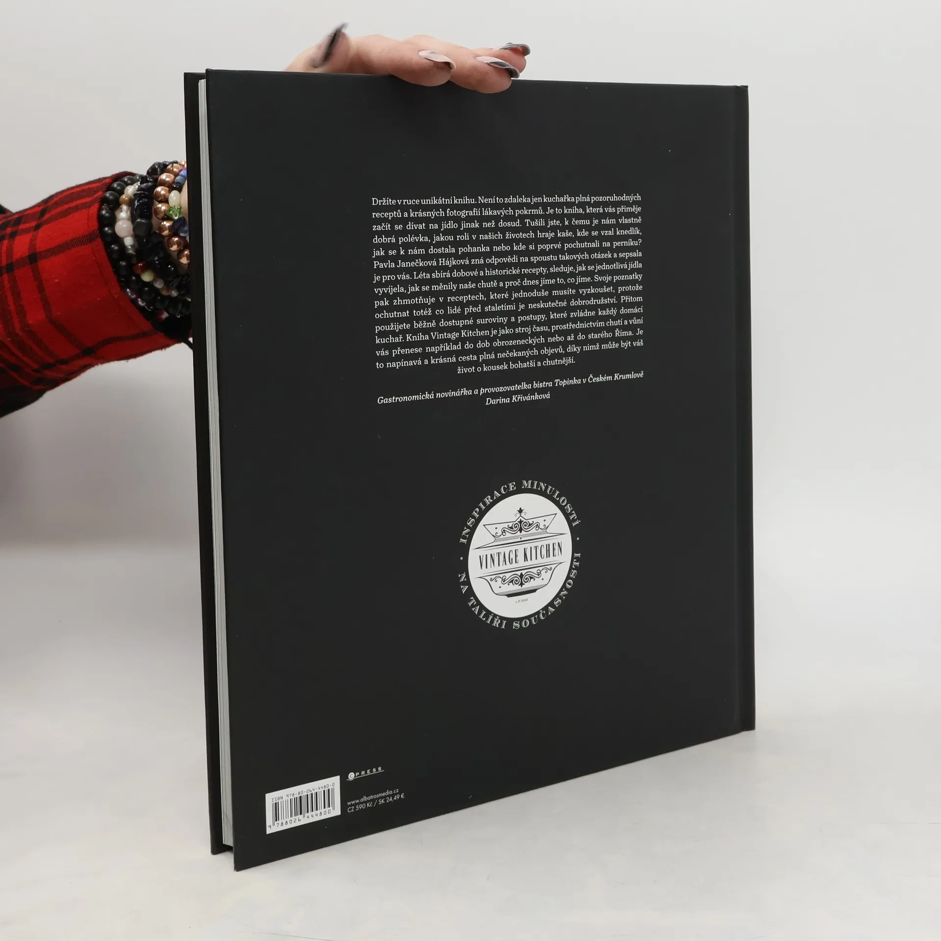 Inspirace minulostí na talíři současnosti Držíte v ruce unikátní knihu. Není to zdaleka jen kuchařka plná pozoruhodných receptů a krásných fotografií lákavých pokrmů. Je to kniha, která vás přiměje začít se dívat na jídlo jinak než dosud. Tušili jste, k čemu je nám vlastně dobrá polévka, jakou roli v našich životech hraje kaše, kde se vzal knedlík, jak se k nám dostala pohanka nebo kde si poprvé pochutnali na perníku? Pavla Janečková Hájková zná odpovědi na spoustu takových otázek a sepsala je pro vás. Léta sbírá dobové a historické recepty, sleduje, jak se jednotlivá jídla vyvíjela, jak se měnily naše chutě, a proč dnes jíme to, co jíme. Svoje poznatky pak zhmotňuje v receptech, které jednoduše musíte vyzkoušet, protože ochutnat totéž co lidé před staletími je neskutečné dobrodružství. Přitom použijete běžně dostupné suroviny a postupy, které zvládne každý domácí kuchař. Kniha Vintage Kitchen je jako stroj času, prostřednictvím chutí a vůní vás přenese například do dob obrozeneckých nebo až do starého Říma. Je to napínavá a krásná cesta plná nečekaných objevů, díky nimž může být váš život o kousek bohatší a chutnější. Gastronomická novinářka a provozovatelka bistra Topinka Darina Křivánková.