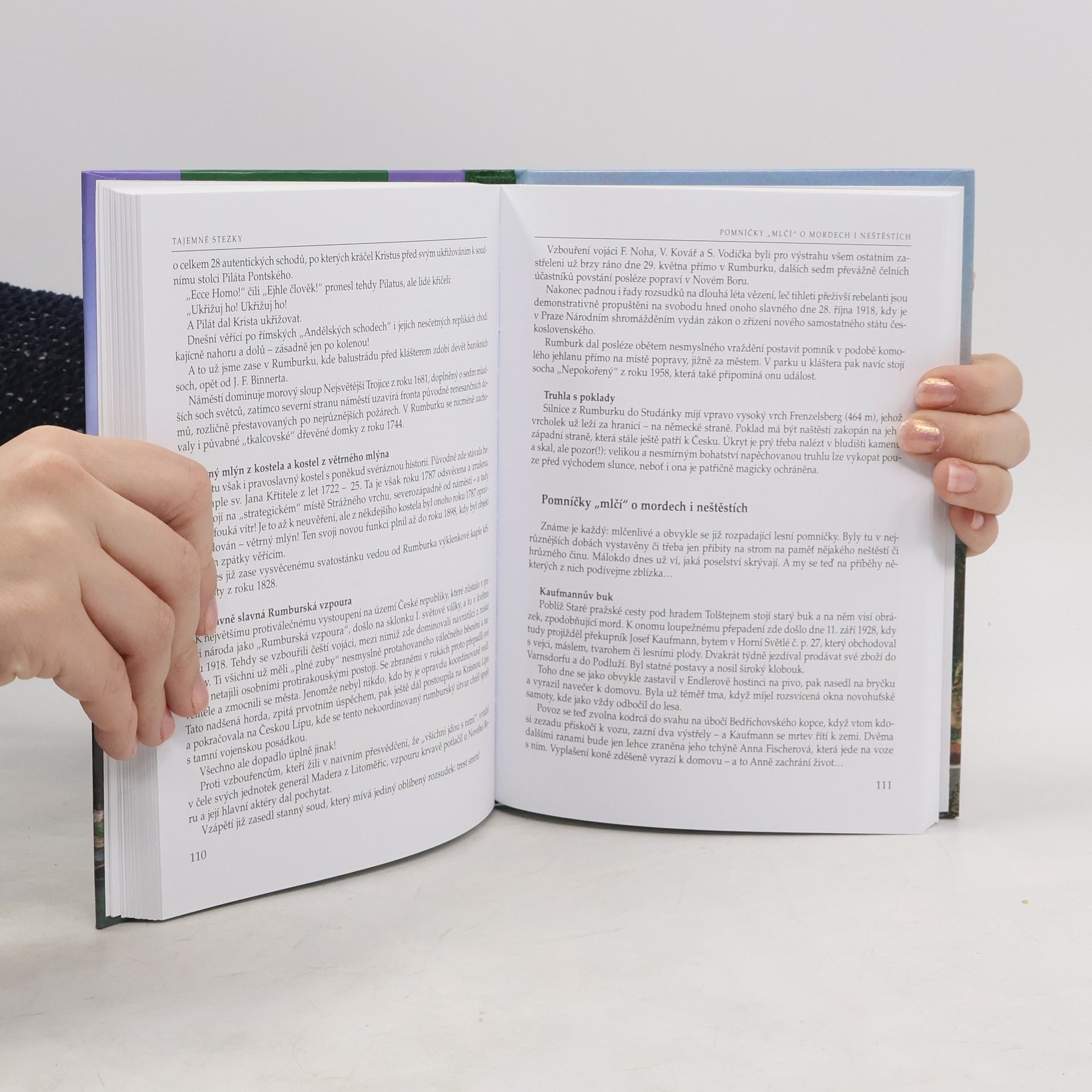 Českosaské Švýcarsko - to je snad až přespříliš jednoduchý název pro nádherný, neopakovatelně romantický, turisticky nesmírně atraktivní a přitom záhadný kraj na pomezí severních Čech a Saska, kraj se svéráznou historií, opravdový ráj divokých pískovcových skal, roztrhaných hlubokými roklemi uprostřed rozlehlých lesů. To vše je protkáno divokými říčkami, tajemnými skalními labyrinty, impozantními stolovými horami a desítkami hradních zřícenin na podivuhodných skalních útvarech. Lidé sem přicházeli, po staletí zde žili - a vyprávěli příběhy. Pyšní aristokraté i ubozí kmáni, zlotřilí loupežníci i něžné panny, zběsilí vojenští knechti či smrtelně nemocní ubožáci, hledající svůj zázrak na zdejších magických místech - ti všichni spoluvytvářeli dějiny tohoto překrásného kraje. Zdejší pověsti se hemží nejrůznějšími strašidly, pekelníky nebo potměšilými skřítky, hlídajícími ukryté poklady. Nechybí ani bílé paní smutně obcházející po rozeklaných cimbuřích polorozpadlých hradů. Snad každičká průrva, každá krajinná dominanta si tady nese svůj vlastní příběh. Nezáleží na tom, zda se jedná o legendu či pravdivý popis dramatických událostí, k nimž tady v blízké či dávné minulosti došlo, neboť jsou převážně dojemné, poučné, děsivé a strhující. Stačí se jen začíst…