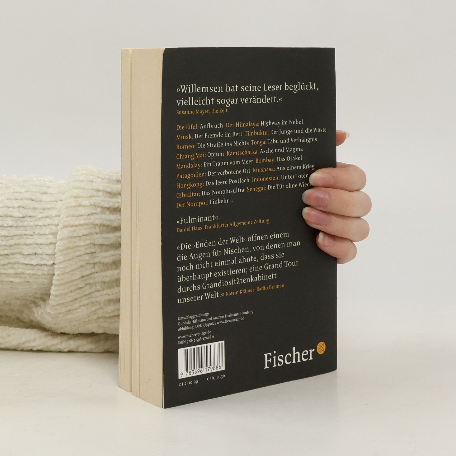Auf fünf Erdteilen war Roger Willemsen unterwegs, um seine ganz persönlichen Enden der Welt zu finden. Manchmal waren es die großen geographischen: das Kap in Südafrika, Patagonien, der Himalaja, die Südsee, der Nordpol. Manchmal waren es aber auch ganz einzigartige, individuelle Endpunkte: ein Bordellflur in Bombay, ein Bett in Minsk, ein Fresko des Jüngsten Gerichts in Orvieto, eine Behörde im Kongo. Immer aber geht es in diesen grandiosen literarischen Reisebildern auch um ein Enden in anderem Sinn: um ein Ende der Liebe und des Begehrens, der Illusionen, der Ordnung und Verständigung. Um das Ende des Lebens – und um den Neubeginn. Die Eifel: Aufbruch – Der Himalaya: Highway im Nebel – Minsk: Der Fremde im Bett – Timbuktu: Der Junge und die Wüste – Borneo: Die Straße ins Nichts – Tonga: Tabu und Verhängnis – Chiang Mai: Opium – Kamtschatka: Asche und Magma – Mandalay: Ein Traum vom Meer – Bombay: Das Orakel – Patagonien: Der verbotene Ort – Kinshasa: Aus einem Krieg – Hongkong: Das leere Postfach – Indonesien: Unter Toten – Gibraltar: Das Nonplusultra – Senegal: Die Tür ohne Wiederkehr – Der Nordpol: Einkehr …