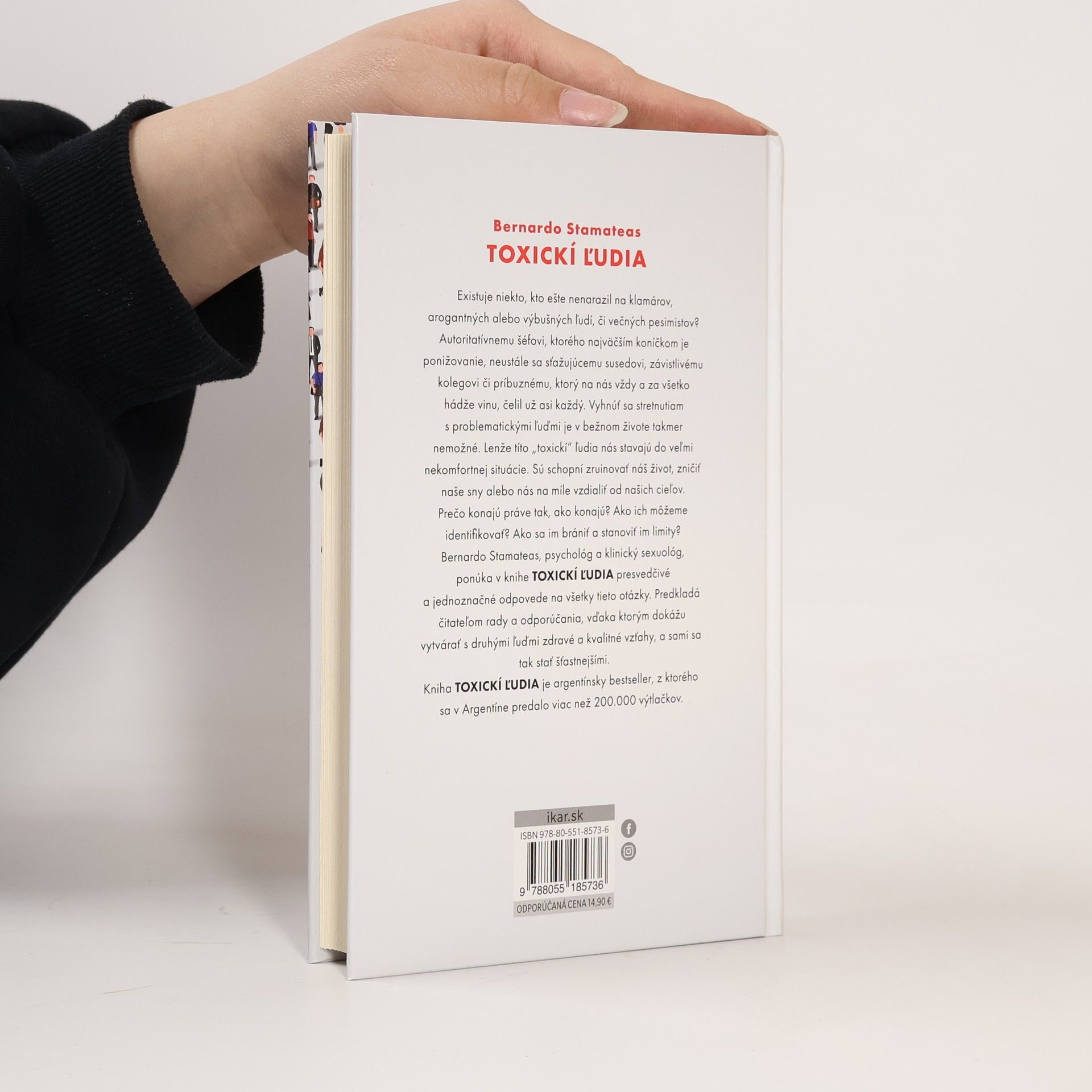 Existuje niekto, kto ešte nenarazil na klamárov, arogantných alebo výbušných ľudí, či večných pesimistov? Autoritatívnemu šéfovi, ktorého najväčším koníčkom je ponižovanie, neustále sa sťažujúcemu susedovi, závistlivému kolegovi či príbuznému, ktorý na nás vždy a za všetko hádže vinu, čelil už asi každý. Vyhnúť sa stretnutiam s problematickými ľuďmi je v bežnom živote takmer nemožné. Takíto ľudia nás však stavajú do veľmi nekomfortnej situácie. Sú schopní zruinovať nám život, zničiť naše sny alebo nás na míle vzdialiť od našich cieľov.V knihe TOXICKÍ ĽUDIA sa autor, Beranardo Stamateas, psychológ a klinický sexuológ, zamýšľa nad tým, prečo „toxickí“ konajú tak, ako konajú. Prináša čitateľom presvedčivé a jednoznačné odpovede na otázky ako ich správne identifikovať, ako sa im brániť a stanoviť im limity. Ponúka tiež rady a odporúčania, ako vytvárať s druhými ľuďmi zdravé a kvalitné vzťahy tak, aby sme sa sami stali šťastnejšími.Kniha TOXICKÍ ĽUDIA je argentínsky bestseller, z ktorého sa v Argentíne predalo viac než 200.000 výtlačkov.