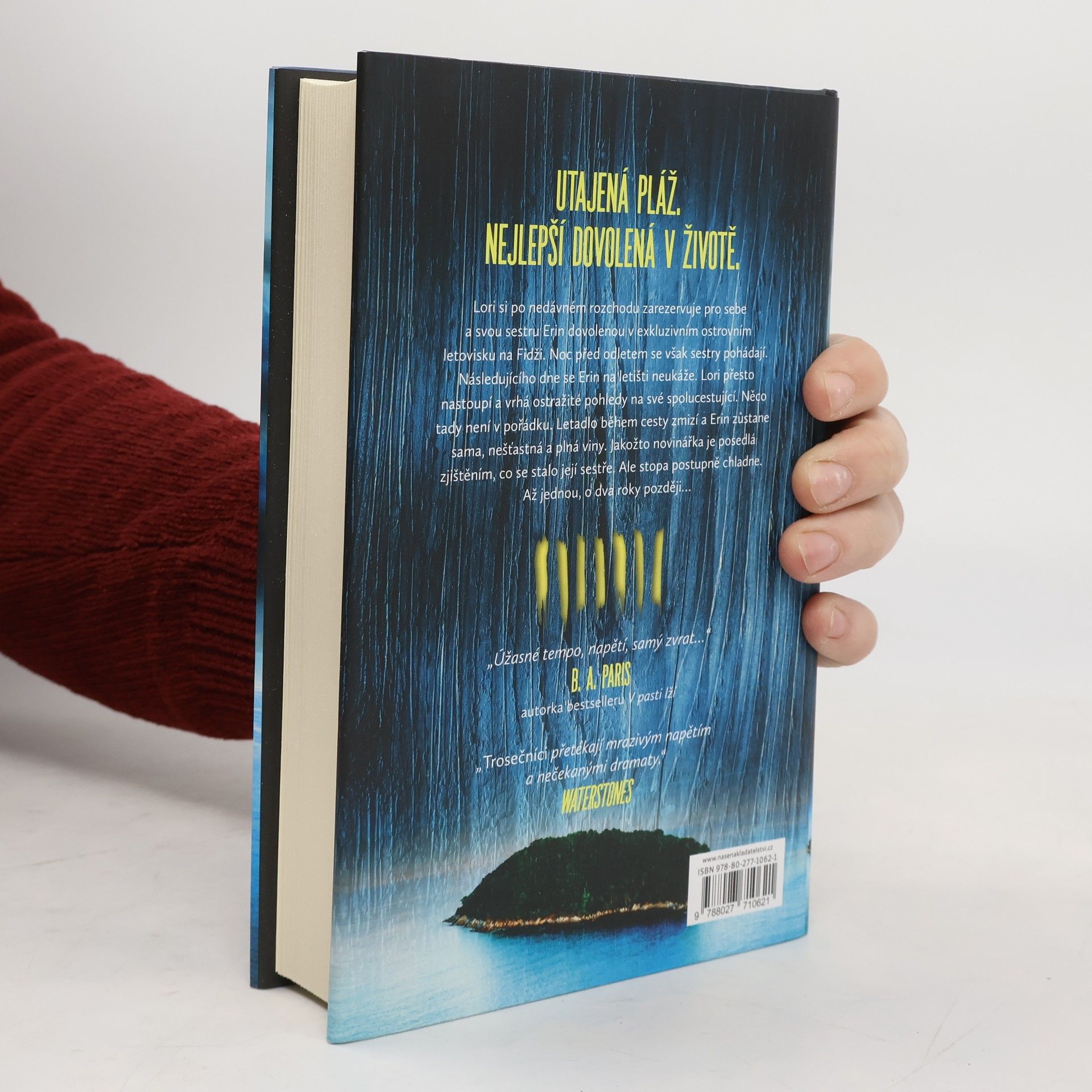 Thriller anglické autorky. Plánovaná společná dovolená dvou sester v tropickém ráji se více než zvrtne... Vzbudíte se na překrásném, odlehlém ostrově. Obklopuje ho třpytivé modré moře, září nad ním zlaté zapadající slunce a do bělostného písku ještě nevstoupila lidská noha. A přesto to není obyčejná dovolená. Podél vraku letadla přechází sem a tam cizí člověk. Další cizinec si brousí nůž a do kůry palmy vyrývá jména mrtvých. Ostatní ho pozorují, rozesazeni kolem mihotavých stínů planoucího ohně. A každý z nich má své nevyřčené příběhy a pečlivě skrývaná tajemství. Nakladatelská anotace. Kráceno.